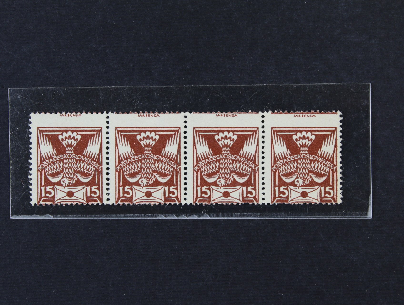 zn. č. 147 A ve vodorovné čtyřpásce se silným posunem perforace