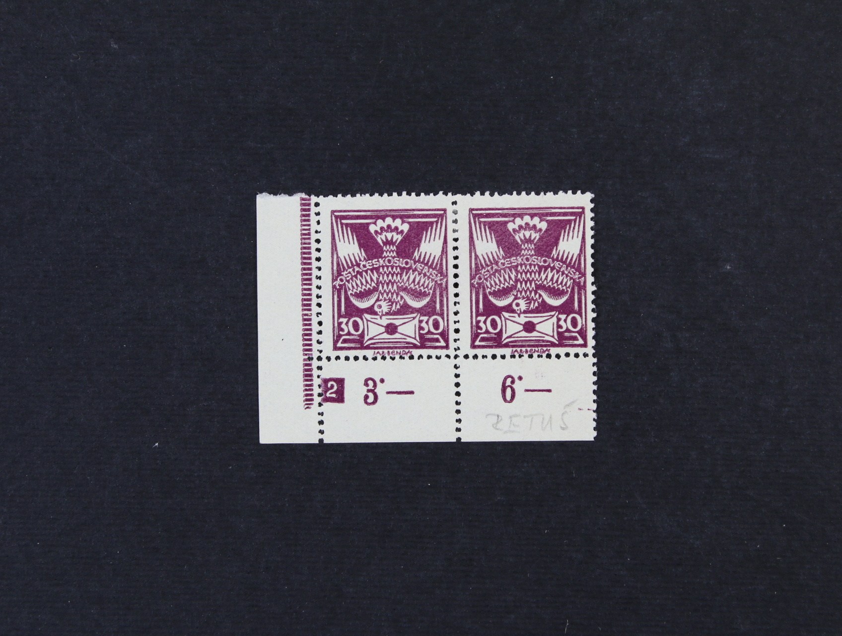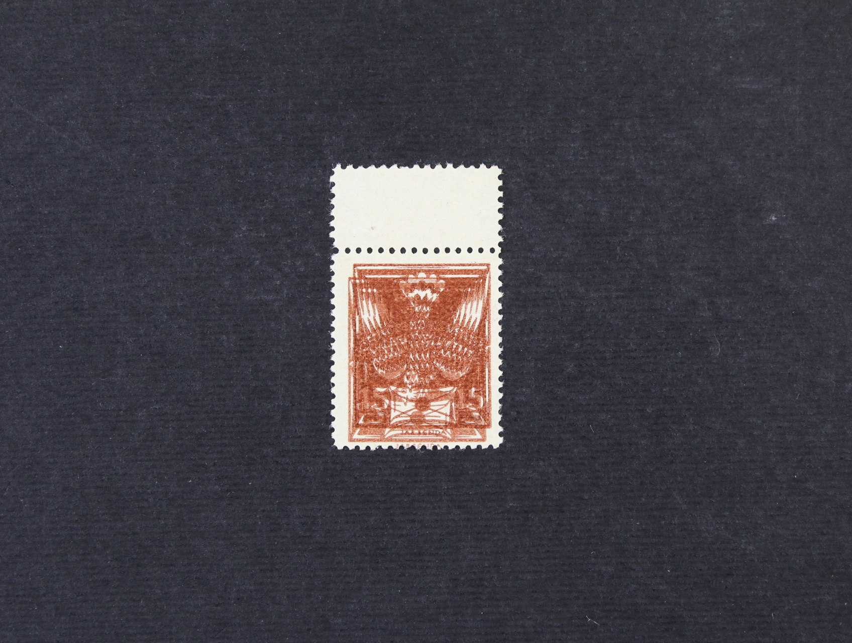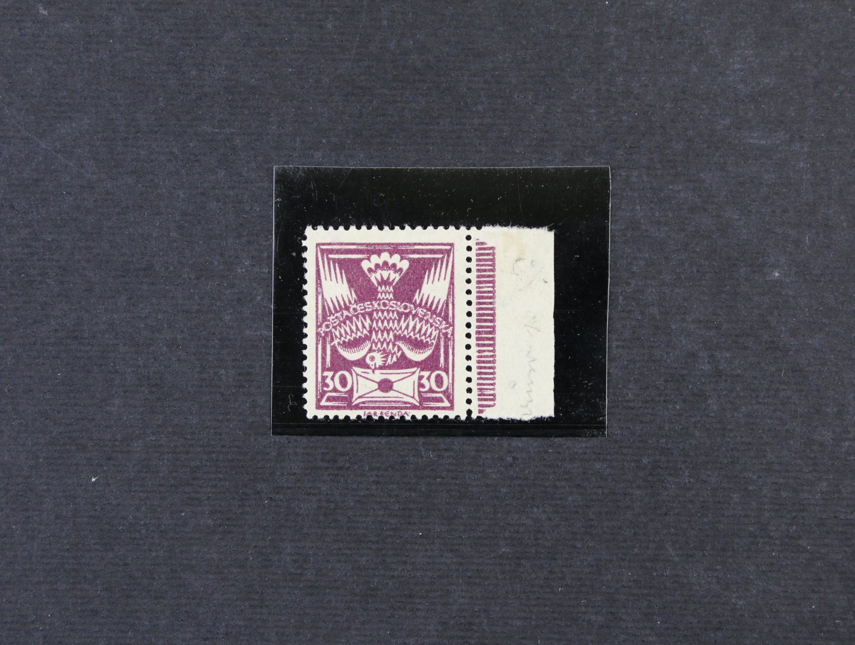 zn. č. 147 B nevydaná s horním okrajem, dvojtý tisk, zk. Gilbert, Fischmeister, nálepka na okraji mimo zn.