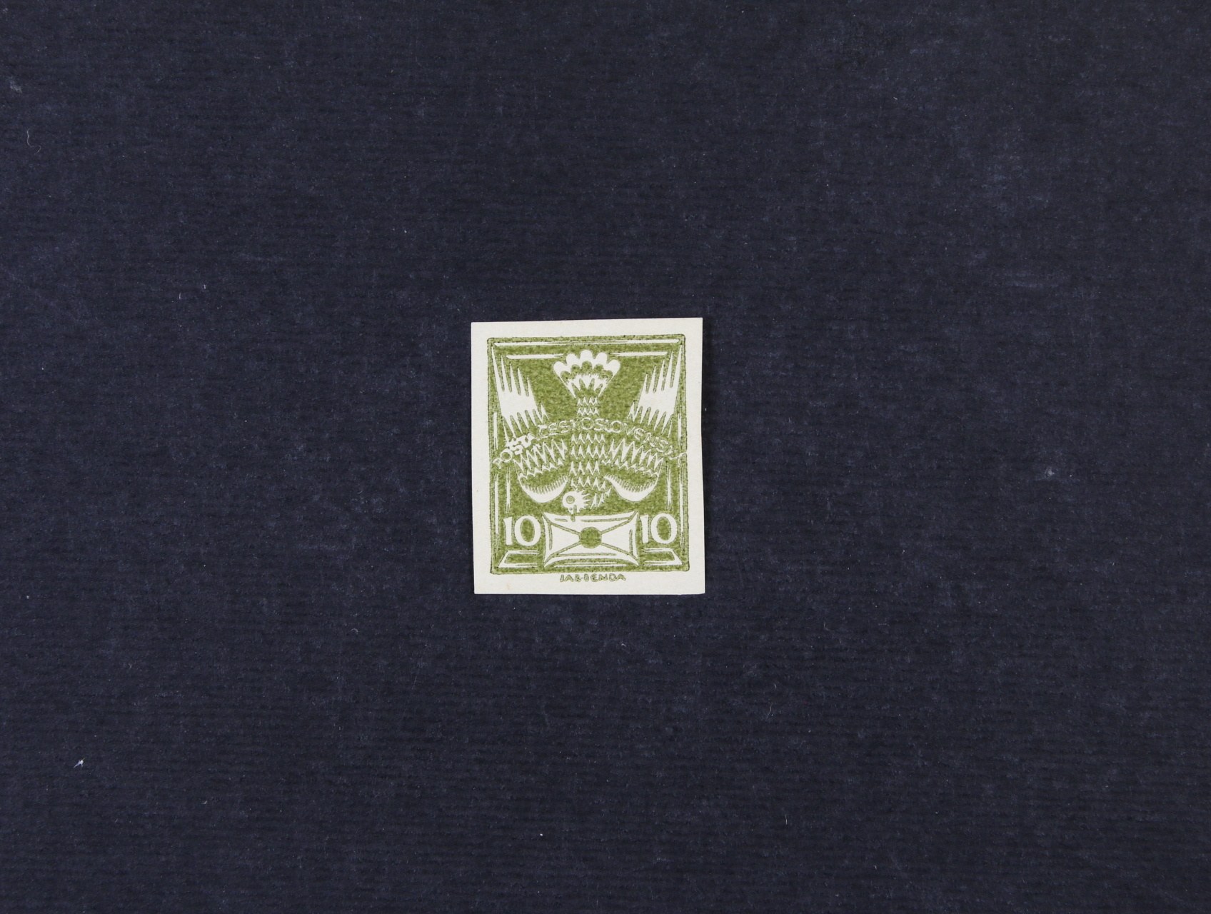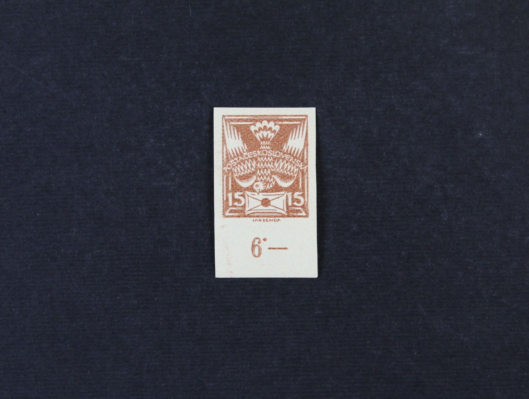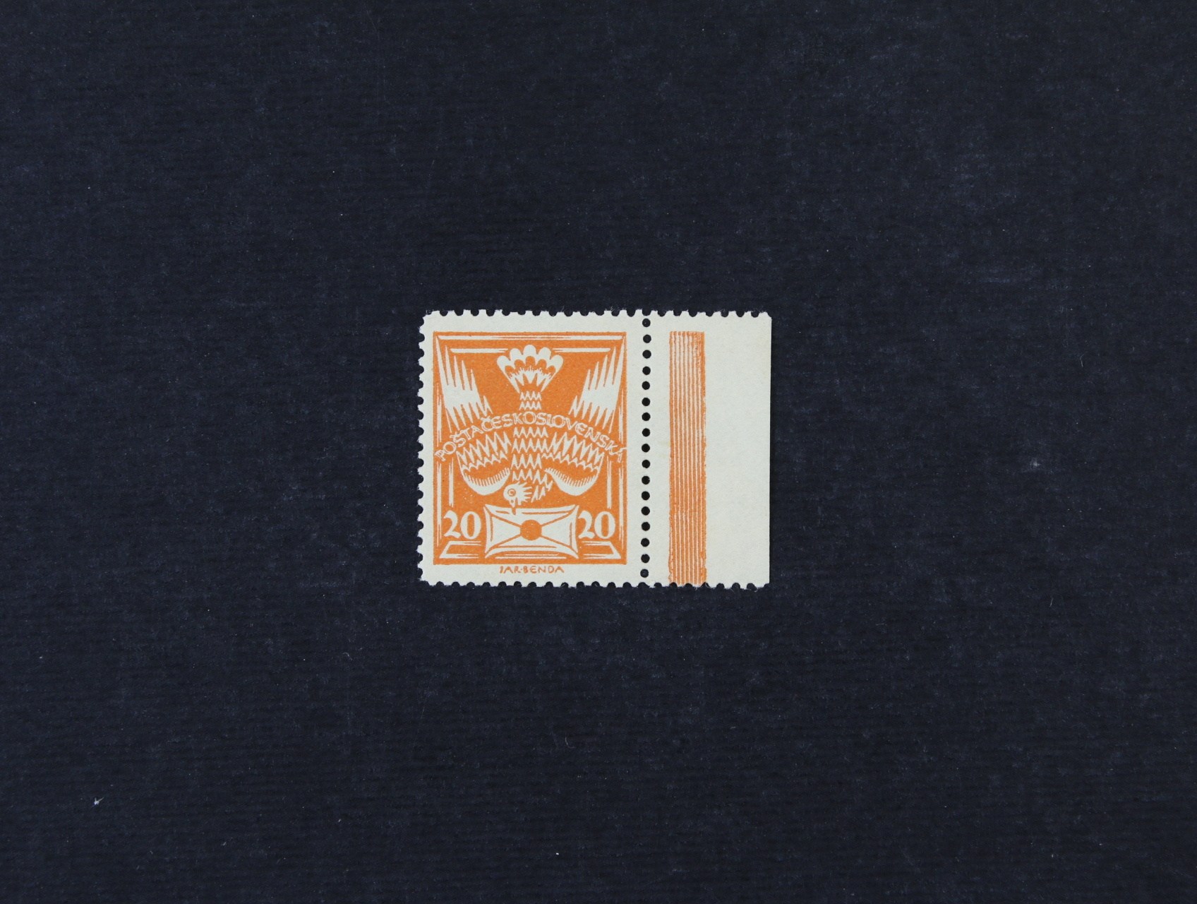 zn. č. 147 B nevydaná s horním okrajem, dvojtý tisk, zk. Gilbert, Fischmeister, nálepka na okraji mimo zn.