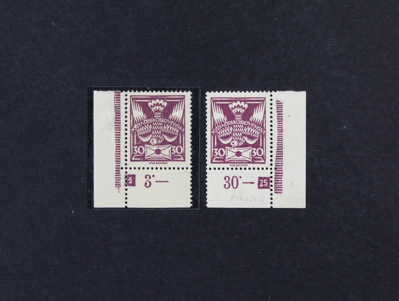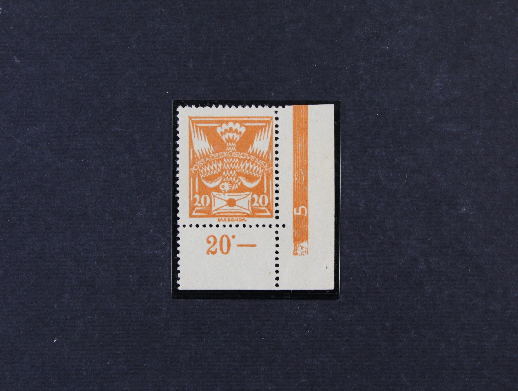 zn. č. 148, typ II - pravý spodní roh. kus s DZ - negativní tisk číslice 5 v ochr. liště