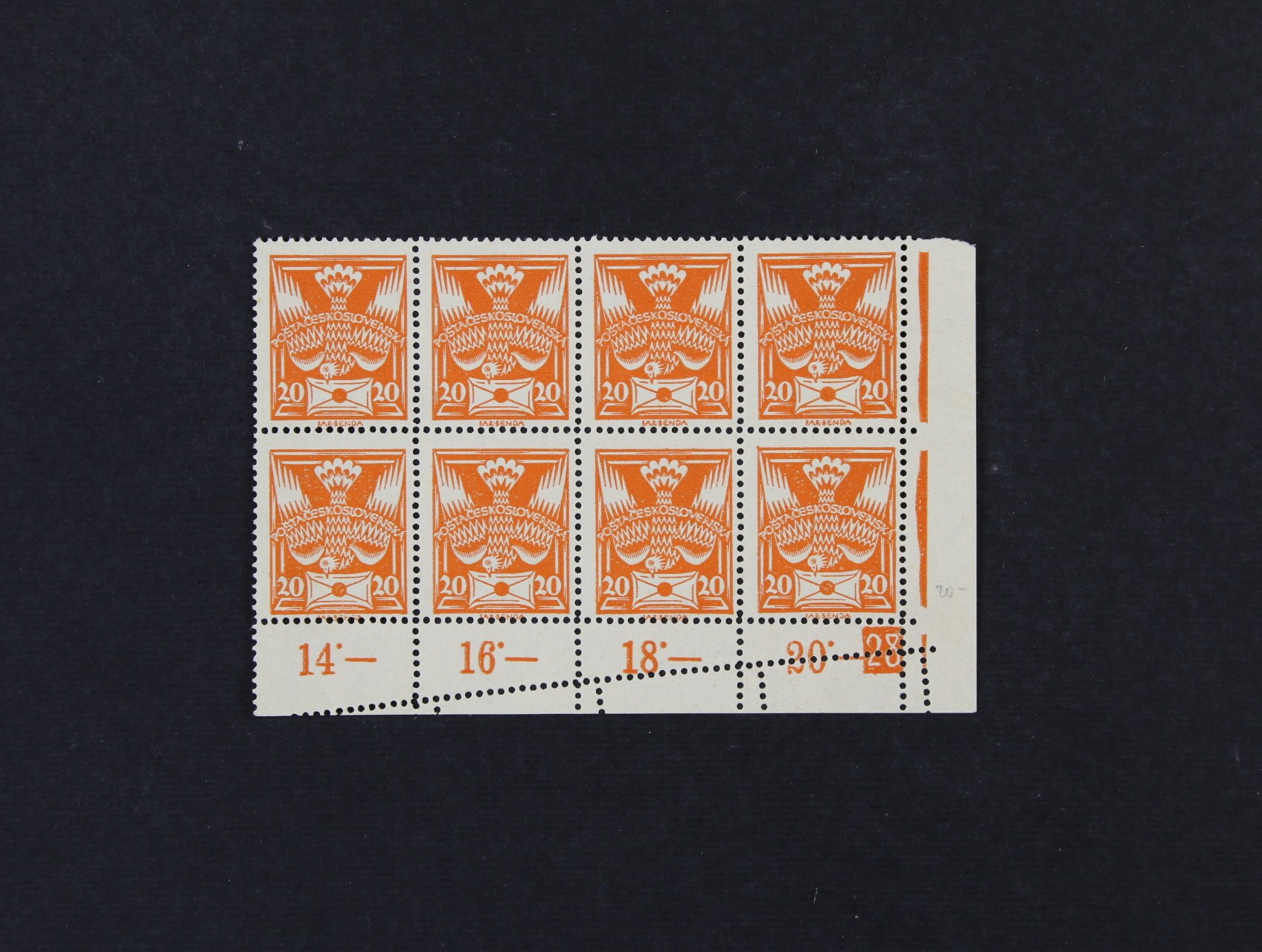 zn. č. 148, typ II - pravý spodní roh. 6ti-blok s DZ 28 pod ZP 100 a šikmou dvojitou spodní perforací