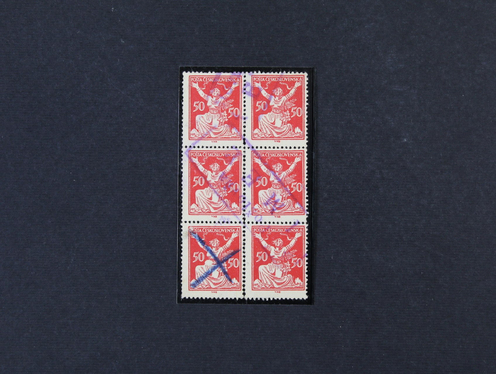 418 zn. č. 155 v 6ti-bloku s DV 1 vajíčko v pase na ZP 39 s rámeč. raz. POŠTOVŇA I M E Ĺ 300
