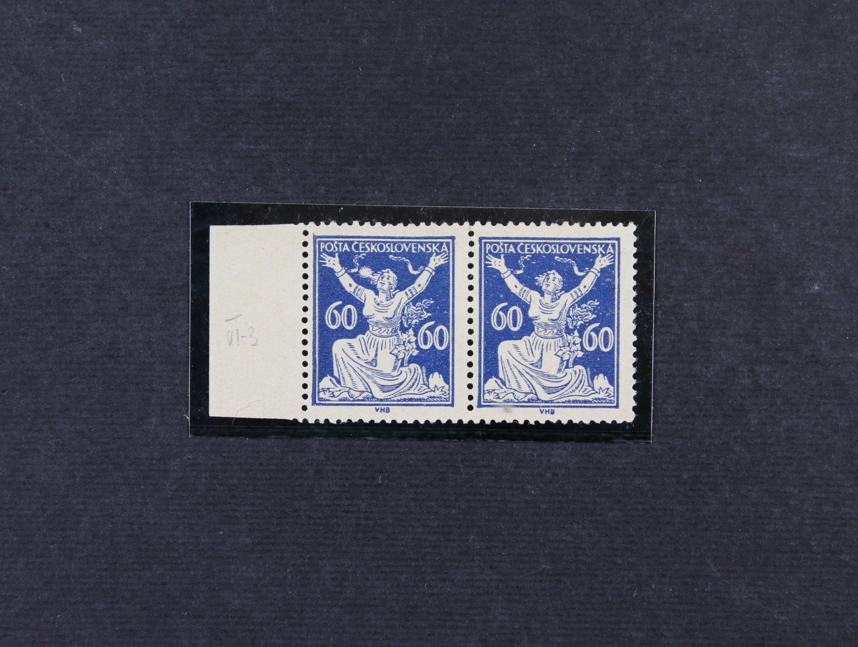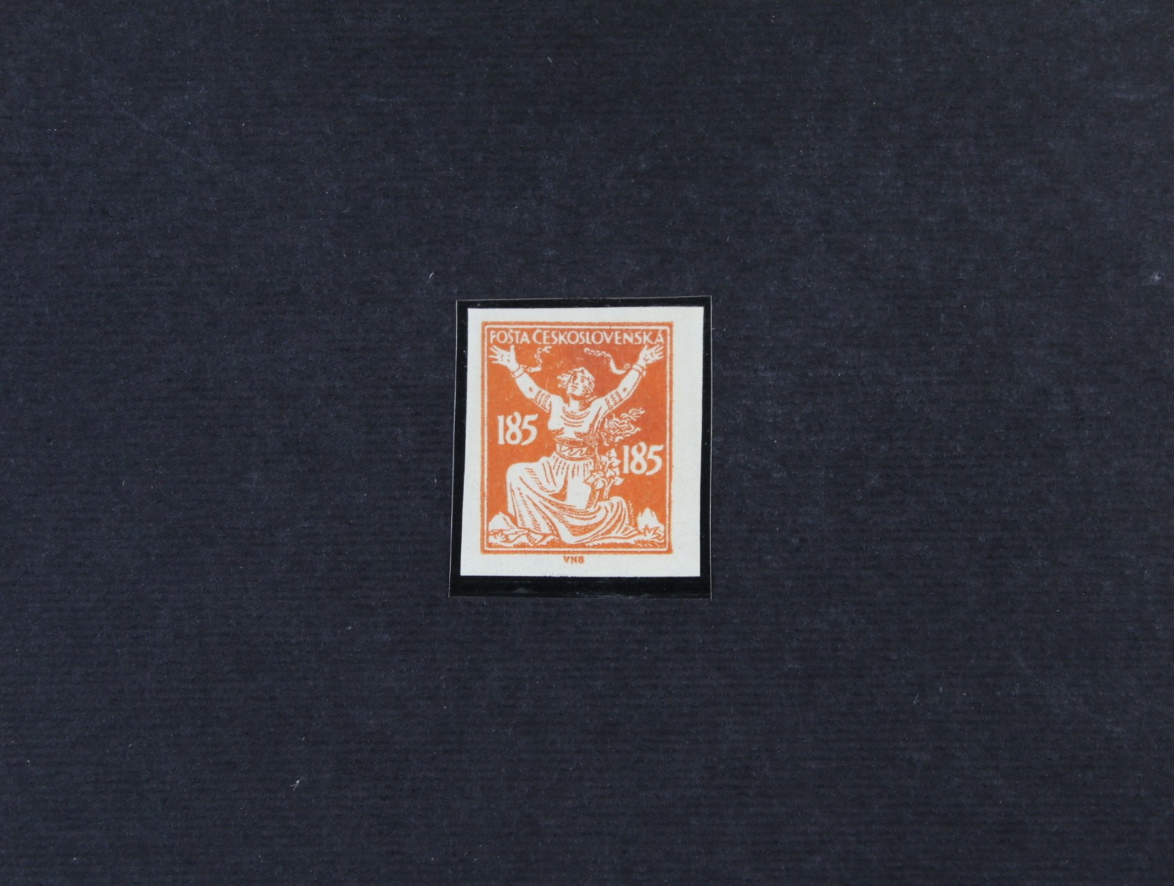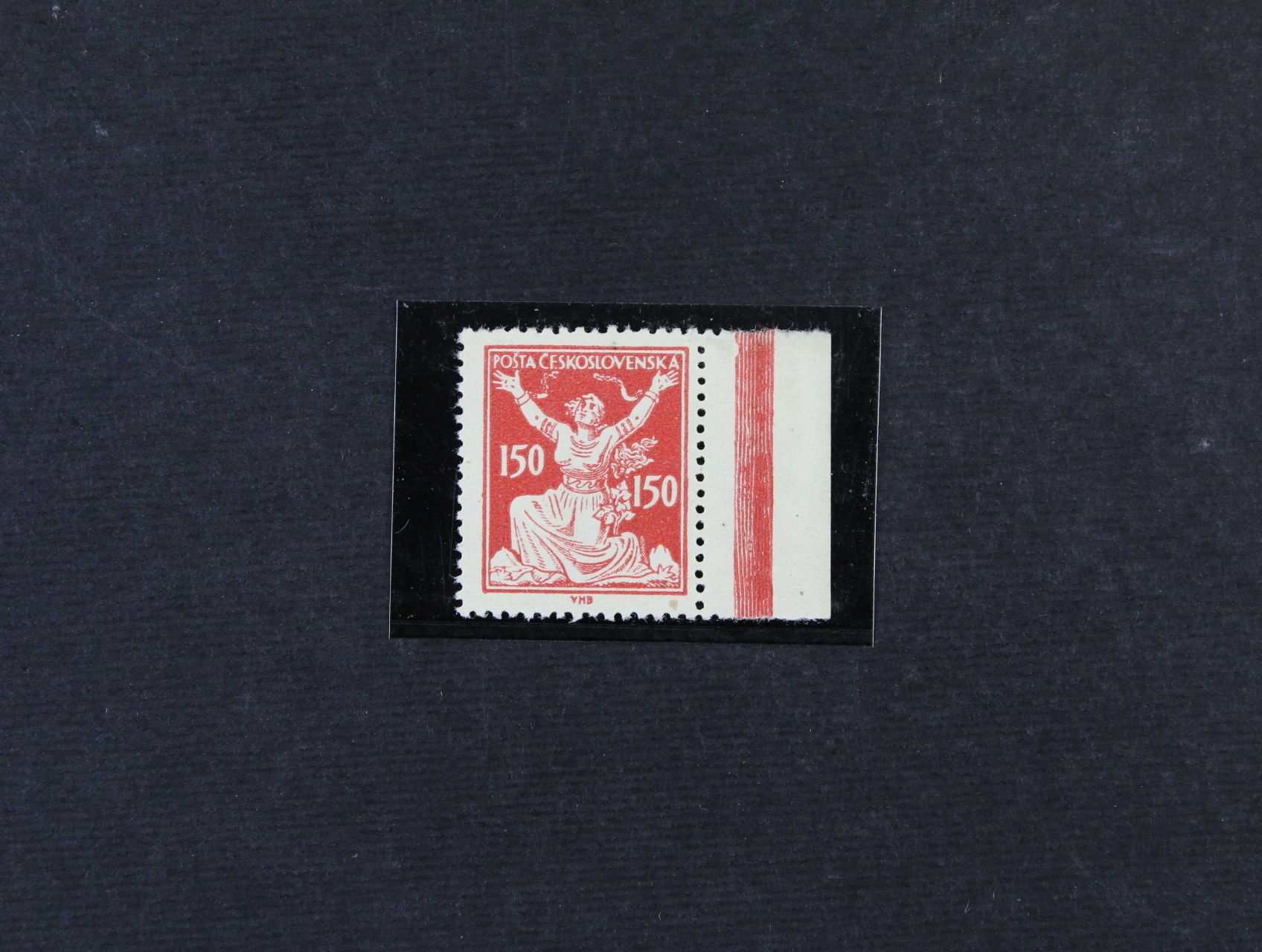 zn. č. 157 ve vodorovné dvoupásce s levým okrajem a DV velká bílá skvrna vlevo u hlavy, neznatelná stopa po nál.