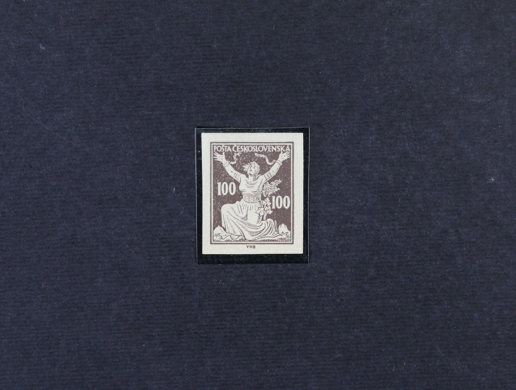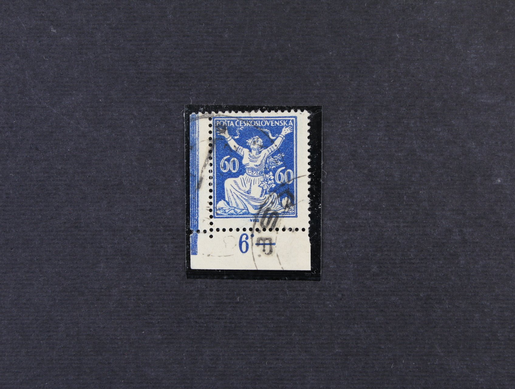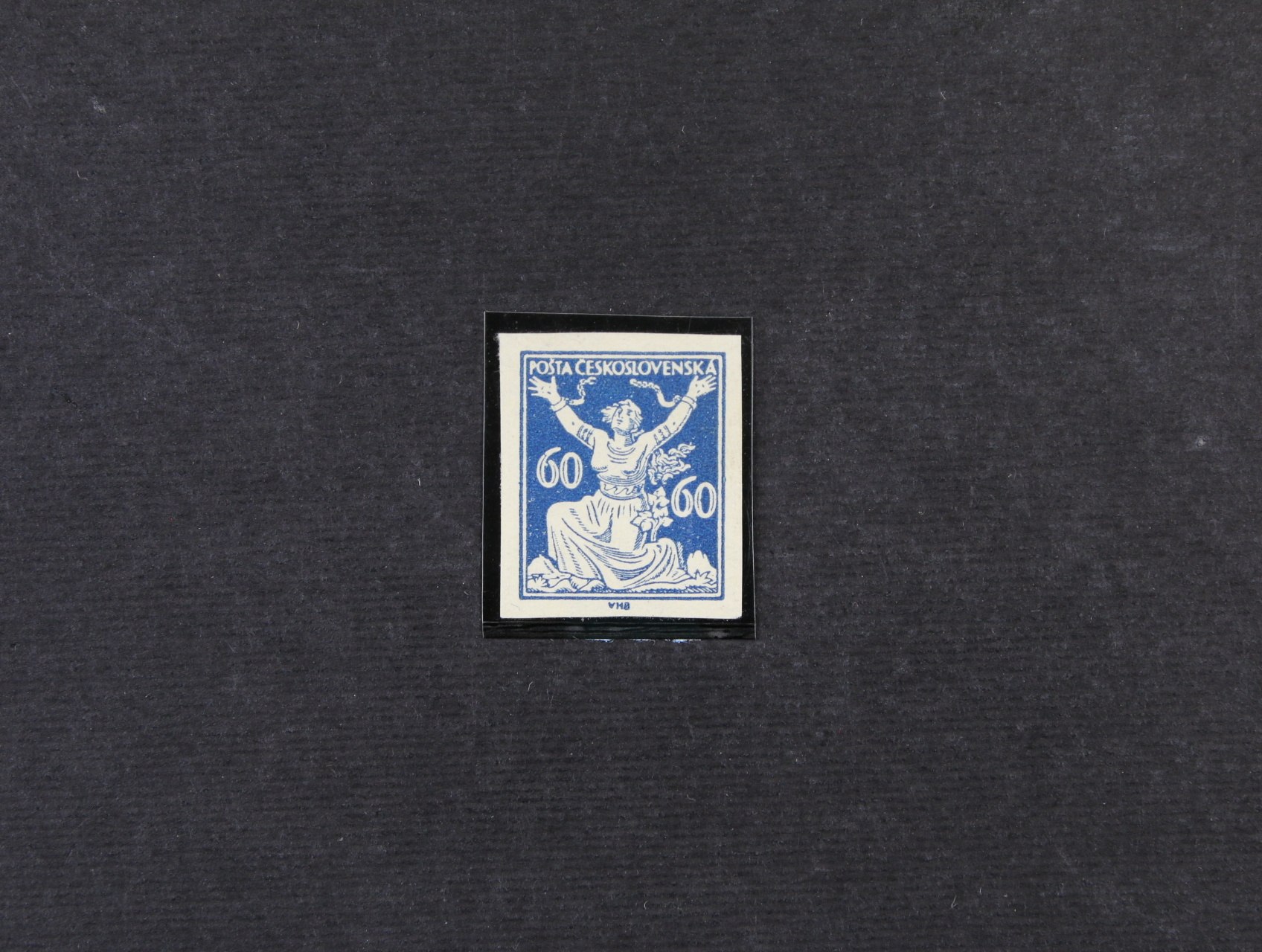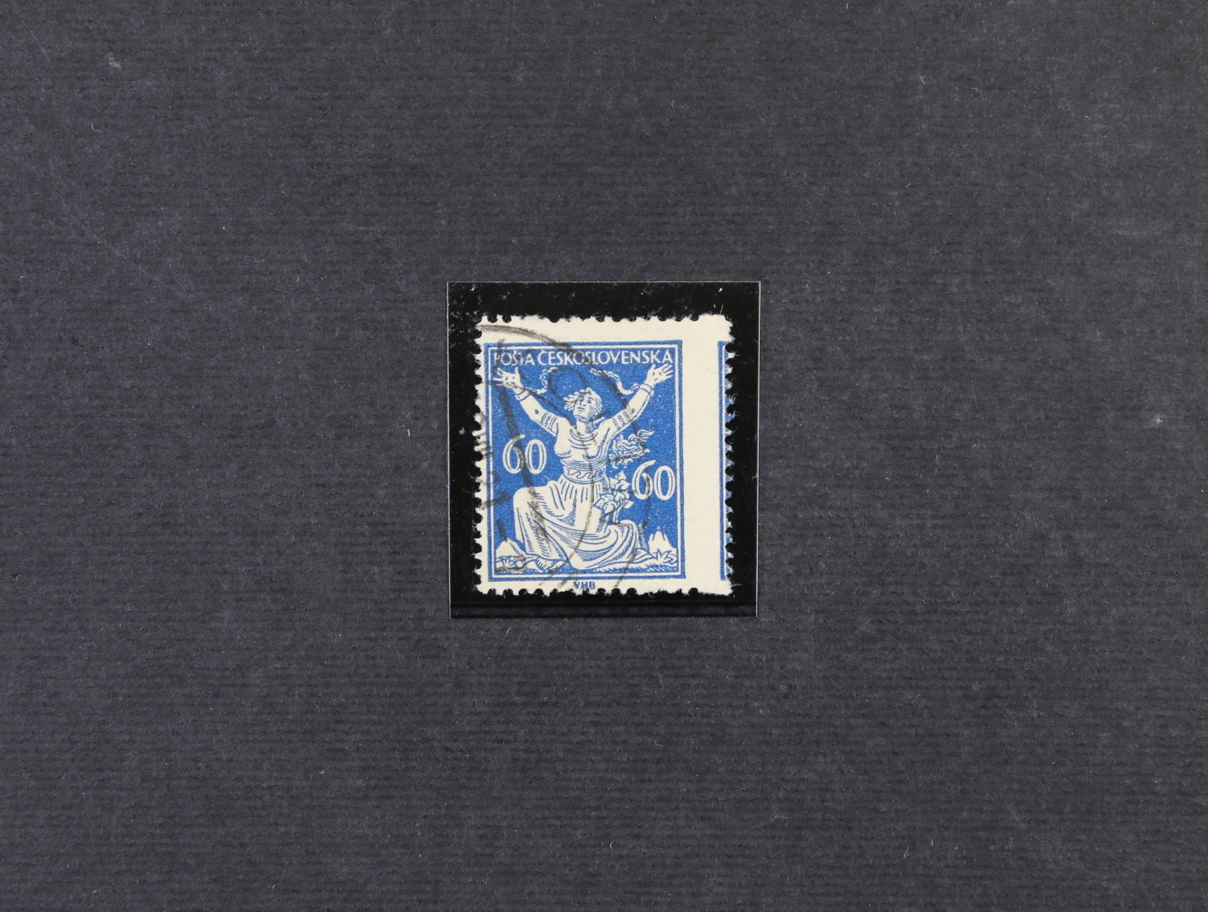 zn. č. 157 ve vodorovné dvoupásce s levým okrajem a DV velká bílá skvrna vlevo u hlavy, neznatelná stopa po nál.