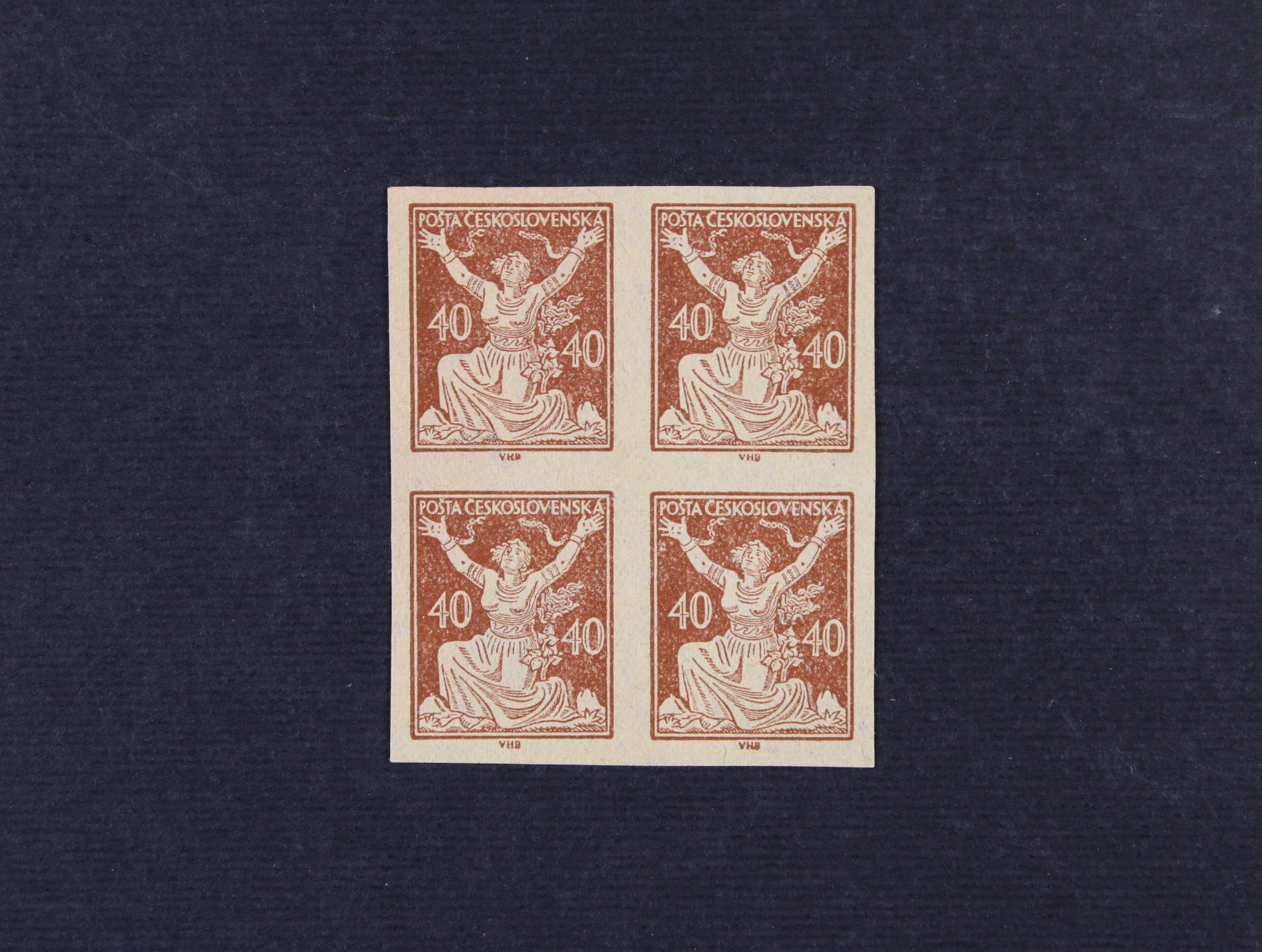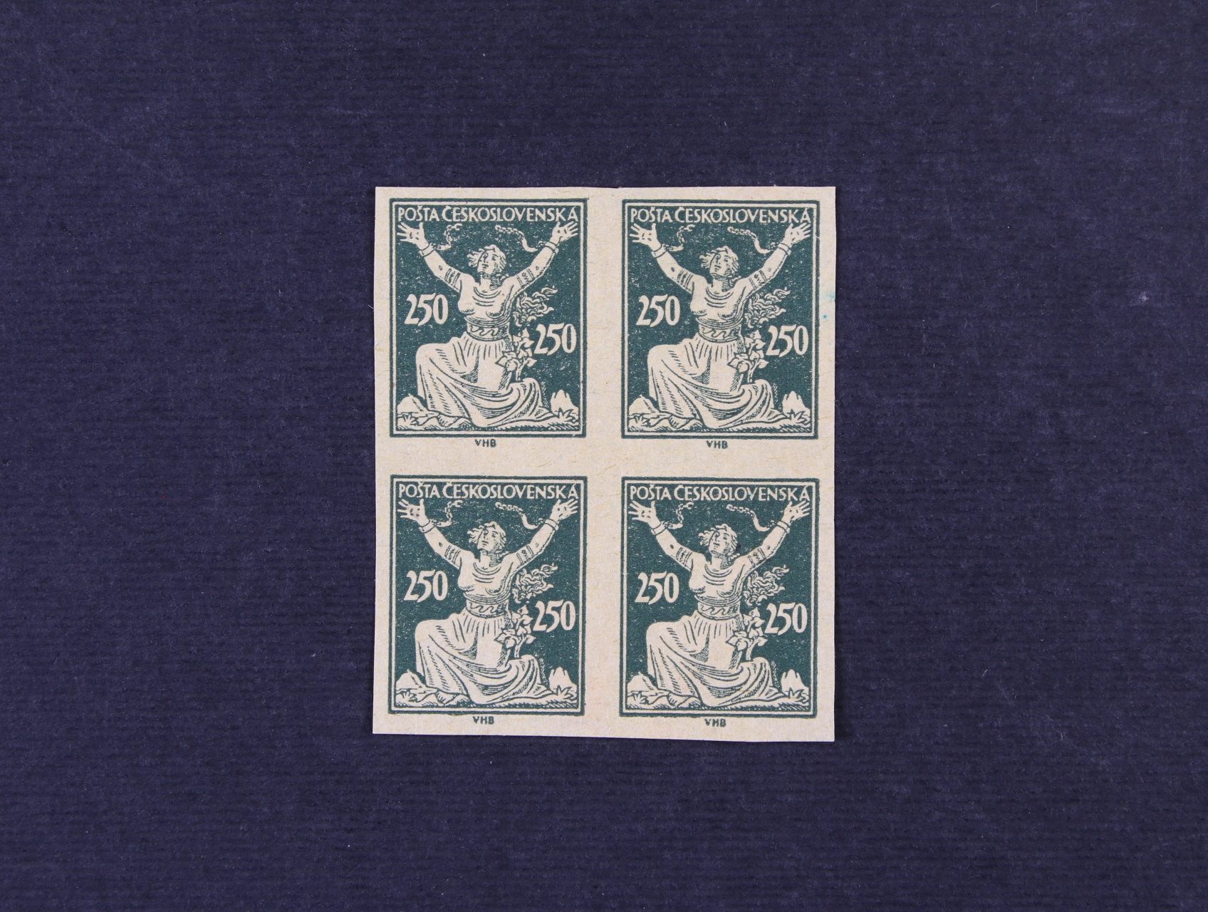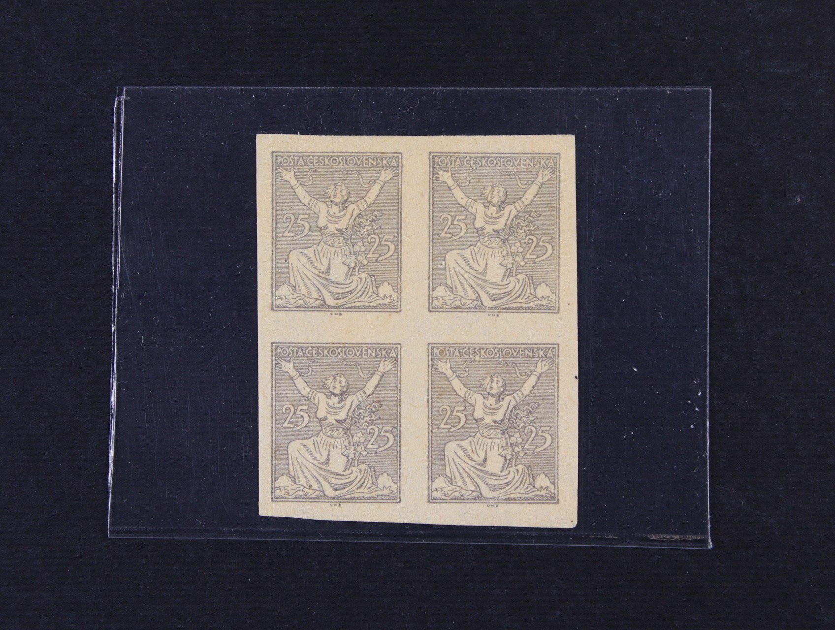 manipul. tisk zn. č. 161 ve čtyřbloku v orig. barvě na nažloutlém papíře
