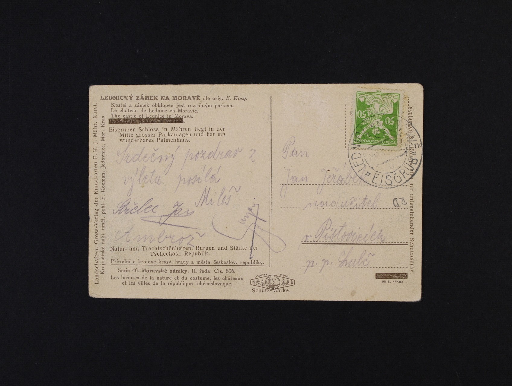 celistvost do Pístovic frank. zn. č. 156 R (retuš vajíčka), ZP 39/4, pod. raz. LEDNICE NA MORAVĚ 23.6.22