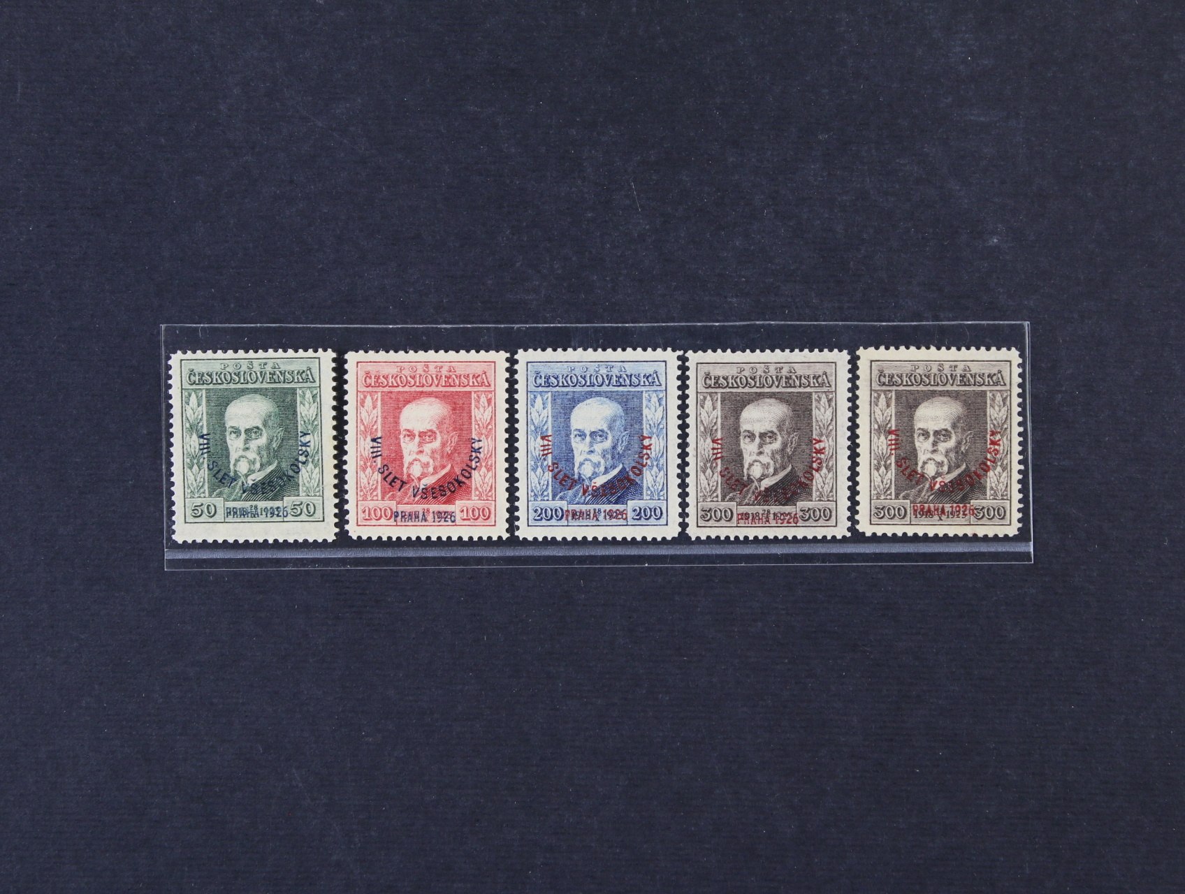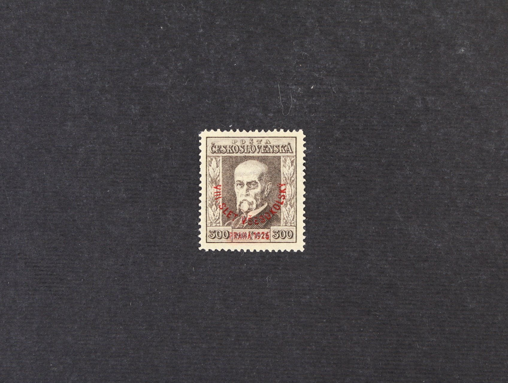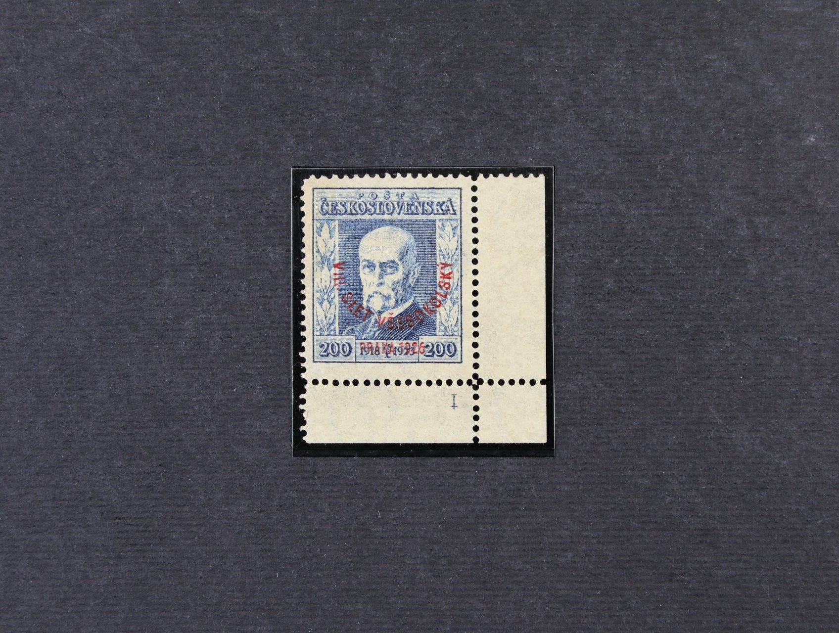 503 zn. č. 184 VIII. SLET VŠESOKOLSKÝ 1926 s převráceným a výrazně posunutým monogramem na lepu, kat. MERKUR 5000 Kč 4000