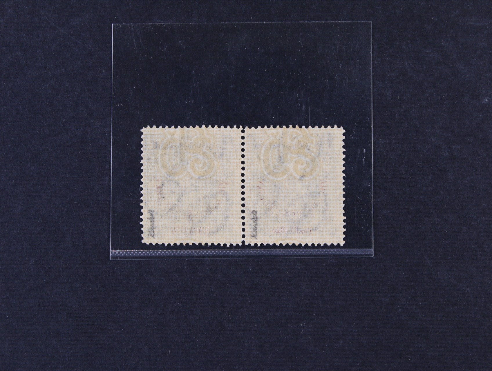 505 zn. č. 185 ve vodorvné dvoupásce, pr. 5, tenký papír, výrazný posun monogramu na lepu k hornímu okraji 3000