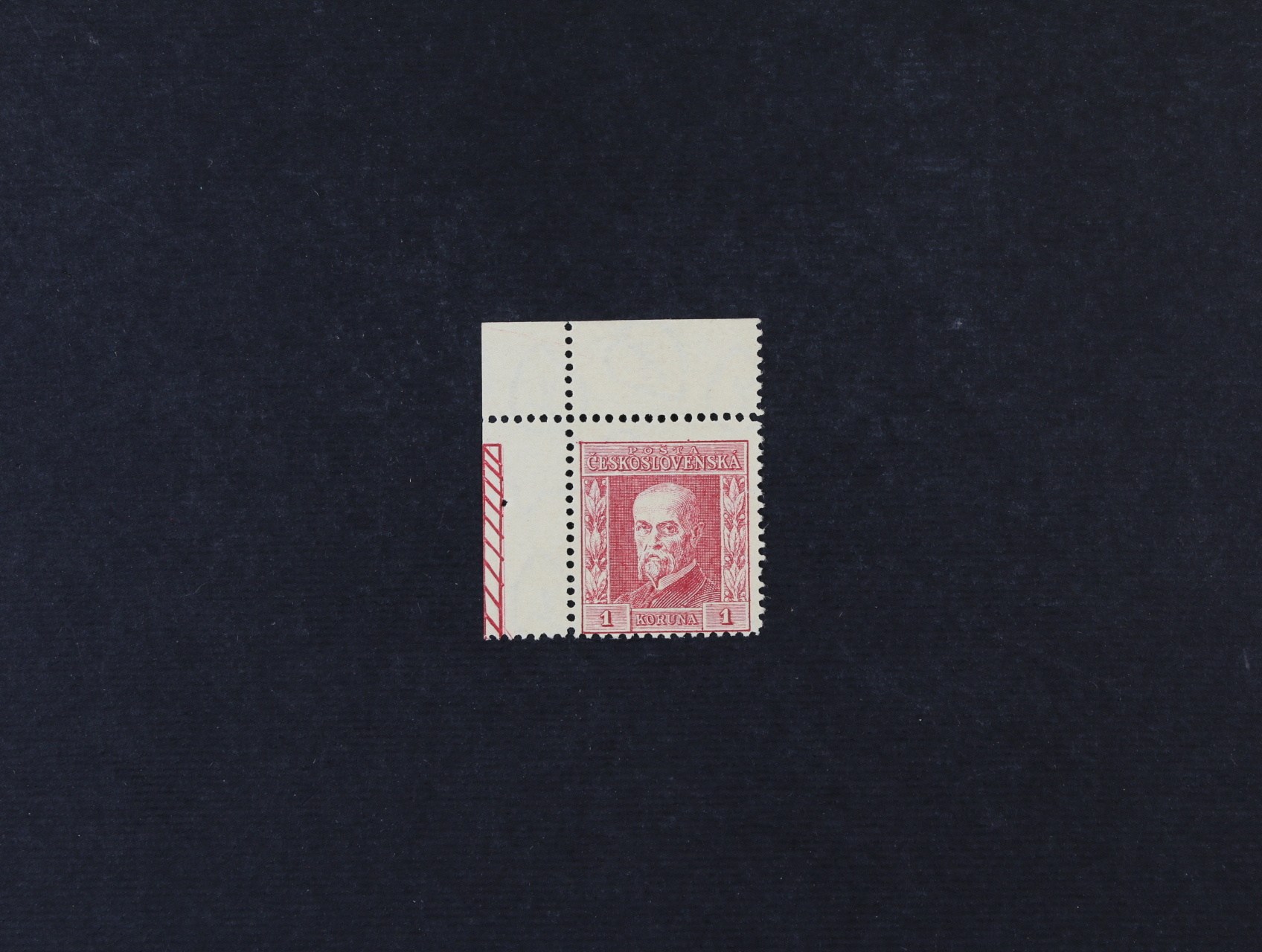 526 zn. č. 194 II.typ, levý horní rohový kus s otiskem ochr. lišty, pr. 7, zk. G. Bühler, nálepka na okraji mimo zn. 1600