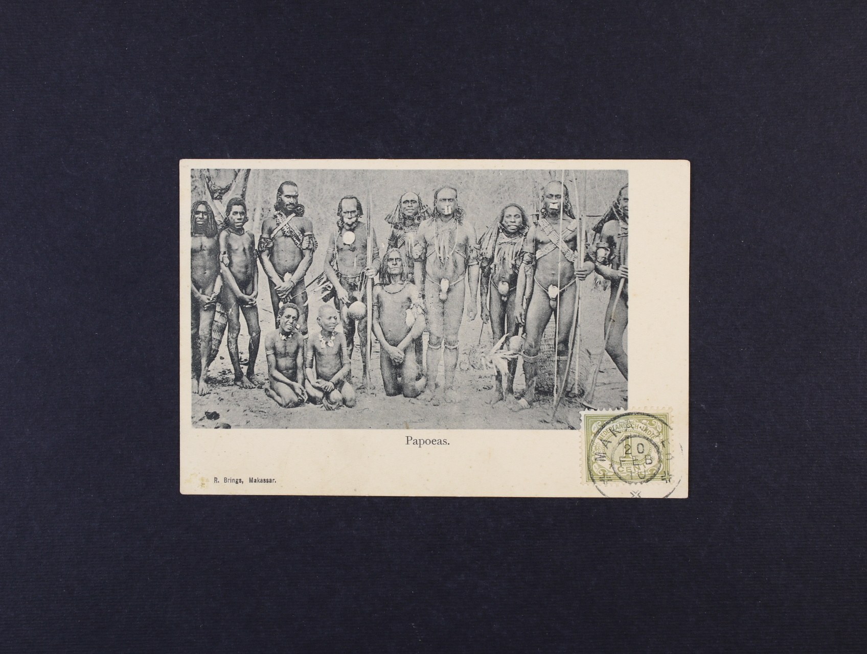 Holandská Indie - jednobar. pohlednice nepoužitá s vylepenou zn. a raz. MAKASSEO 20.FEB.1910, zajímavé