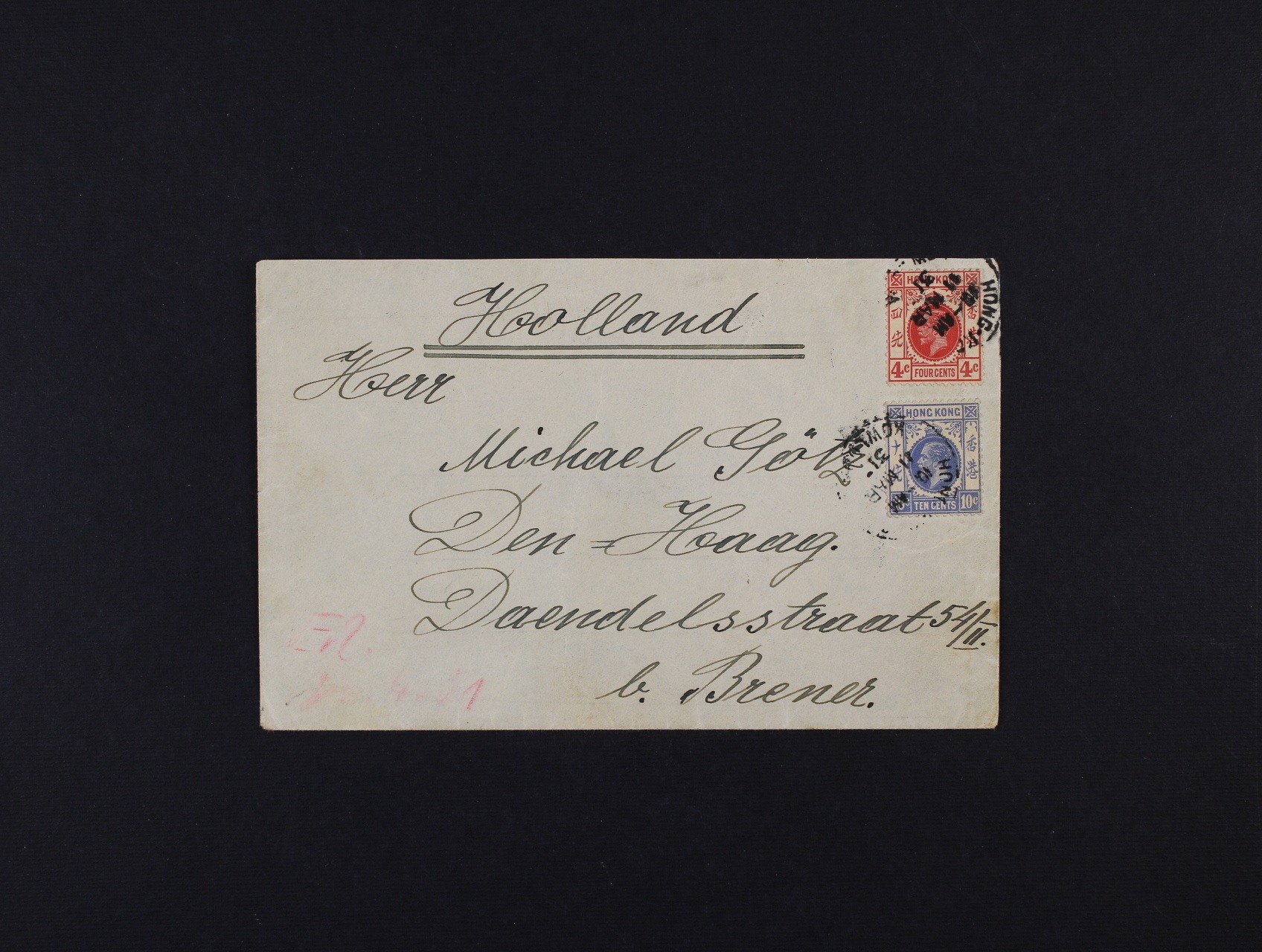 Hong - Kong - let. dopis do Holandska frank. zn. 4c a 10c, pod. raz. HONG - KONG 11.MAR.1931 + průch. raz.