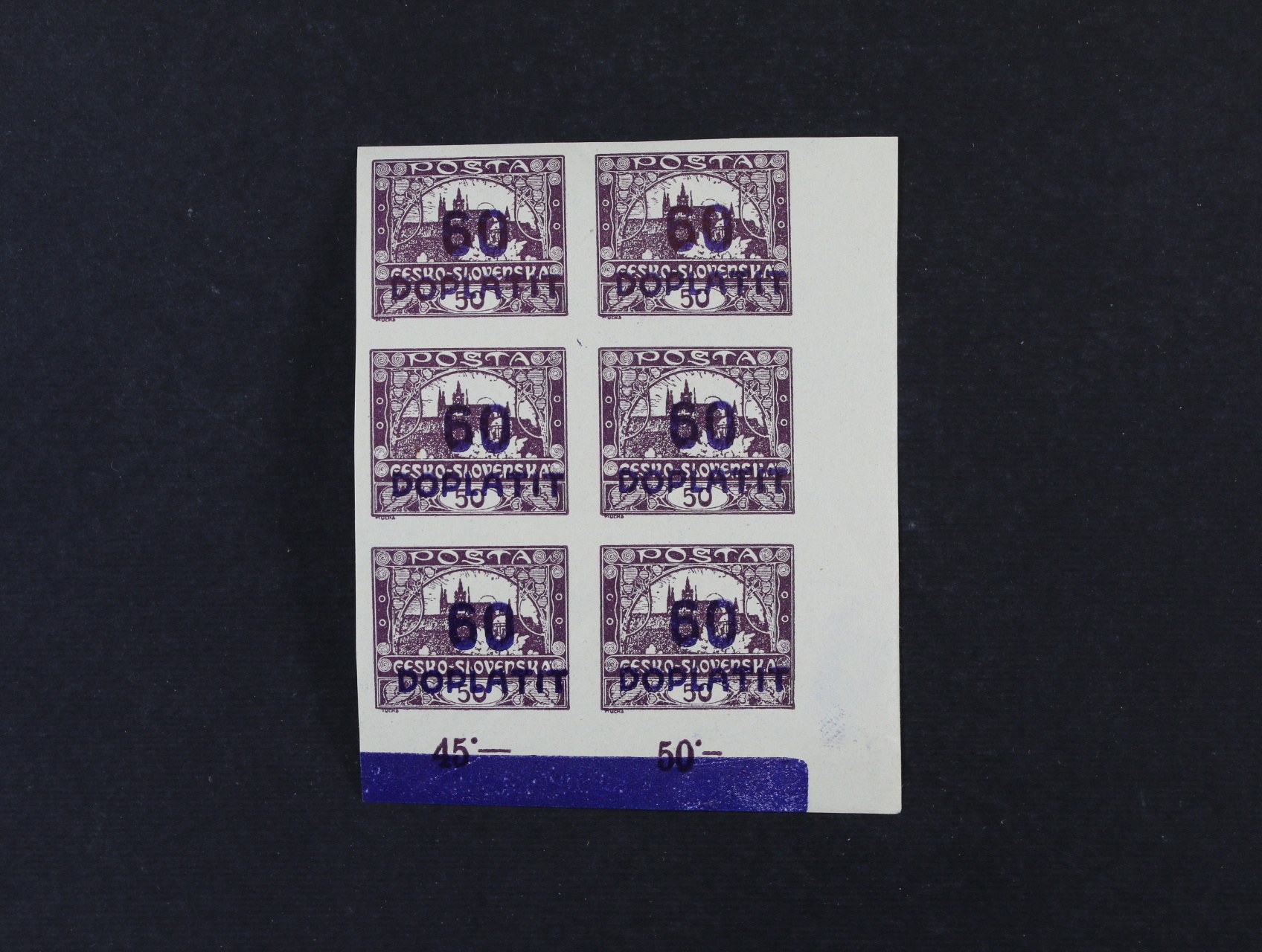 zn. DL č. 20 - pravý spodní roh. 6ti-blok s DZ kratší des. čárka za číslicí 50 pod ZP 100