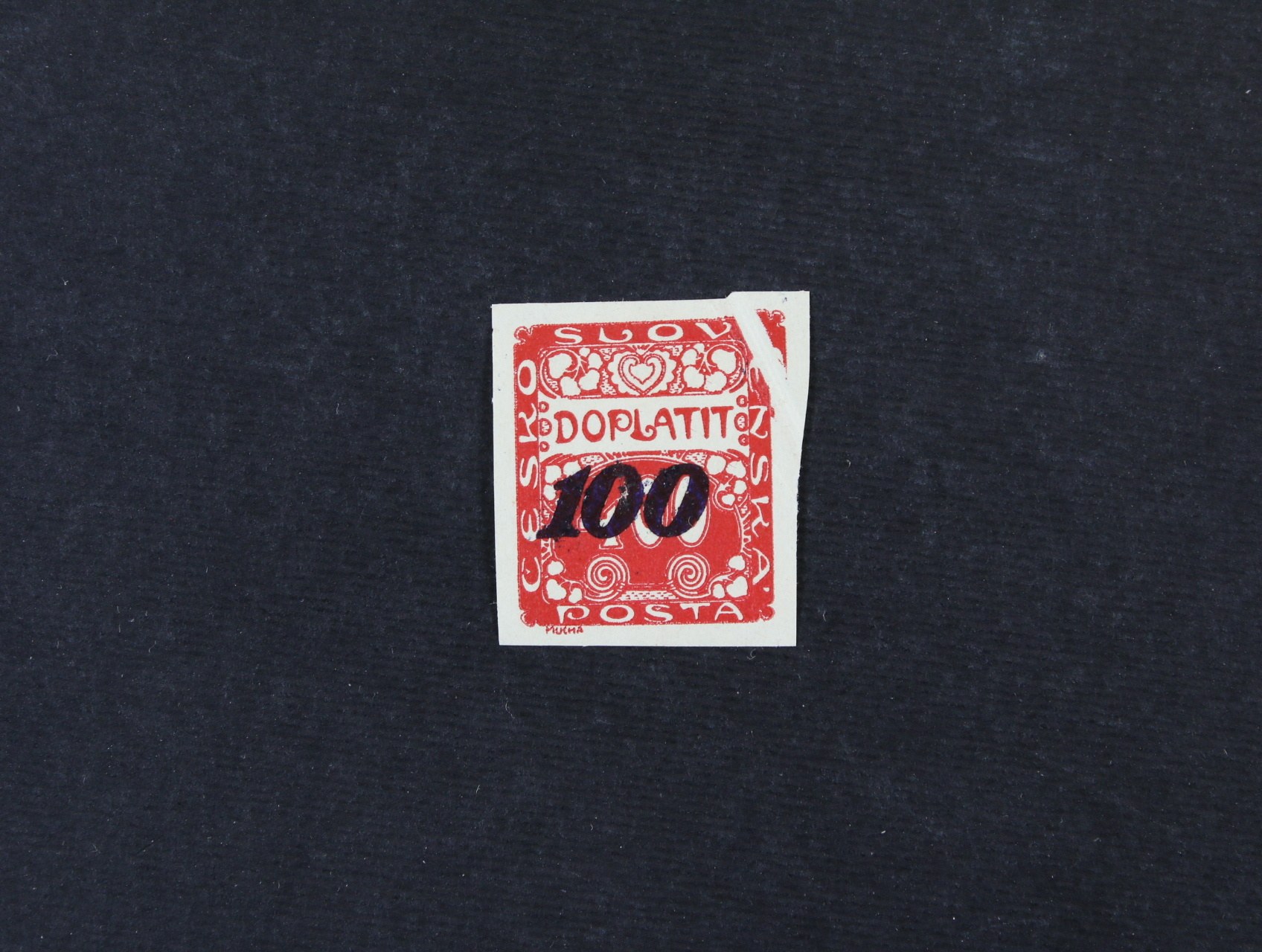 zn. SO č. 4 B, ST rámečku ve svislé dvoupásce, zk. Štolfa, nahoře zvrásněný papír, nepatrně povoleno vlevo v perforaci