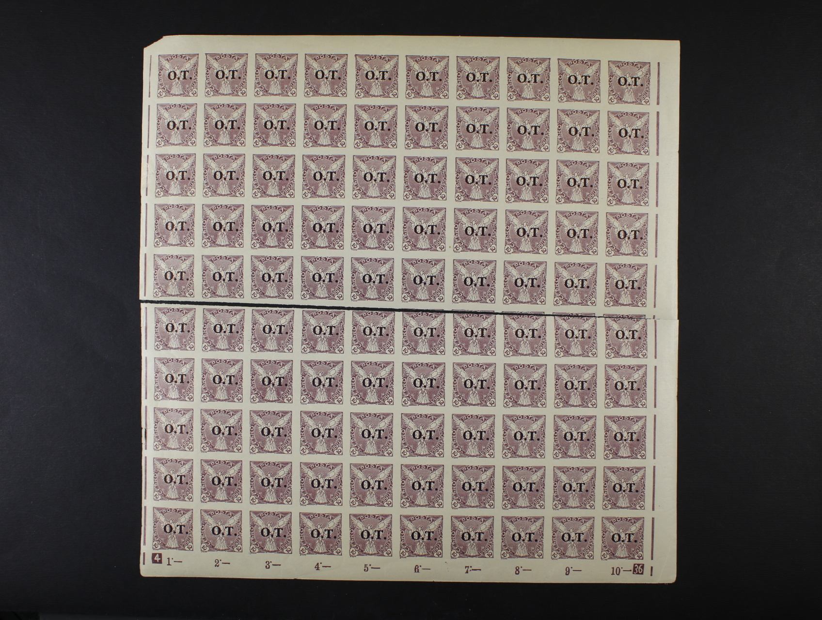 zn. OT č. 1 v kompl. 100kusovém TL, uprostřed vodorovně přestřižen
