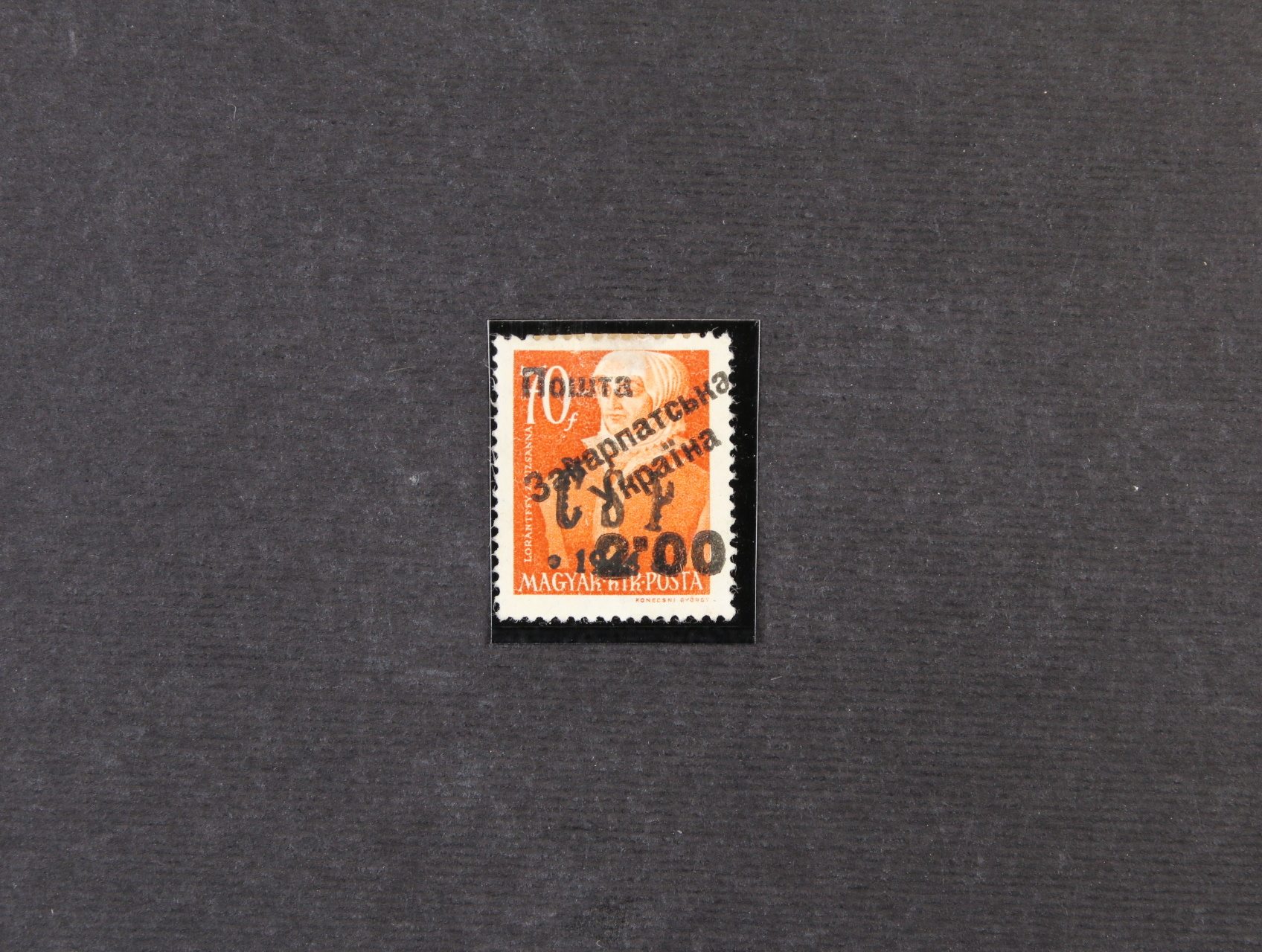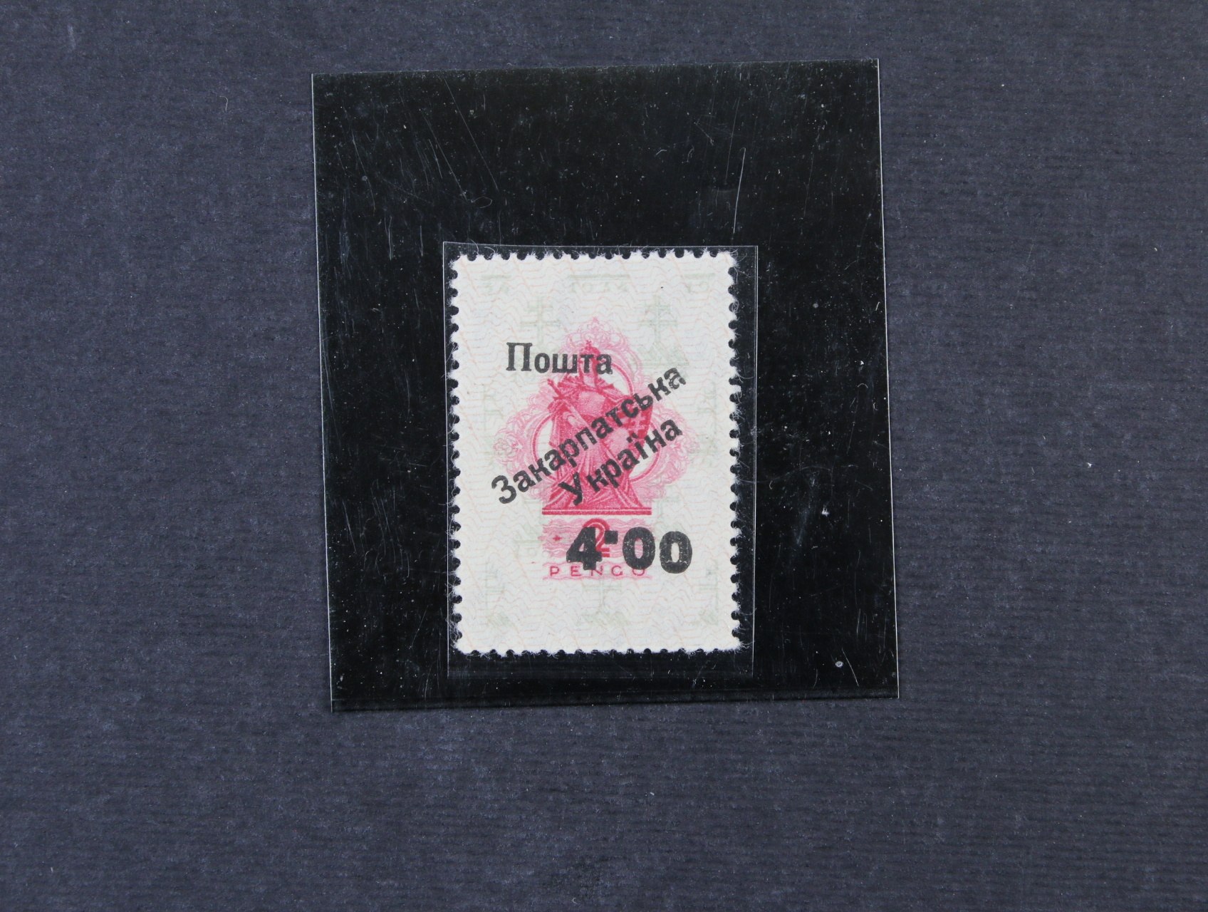 Zakarpatská Ukrajina zn. Uf č. 13 užhorodský přetisk I. vydání na kolku 4.00/2pengö, ZP 4, dle kat. Majer typ IIIb, náklad všech 10ti typů je pouze 155 ks, výskyt typu IIIb je pouze 16 ks, zk. a atest Jurkovič