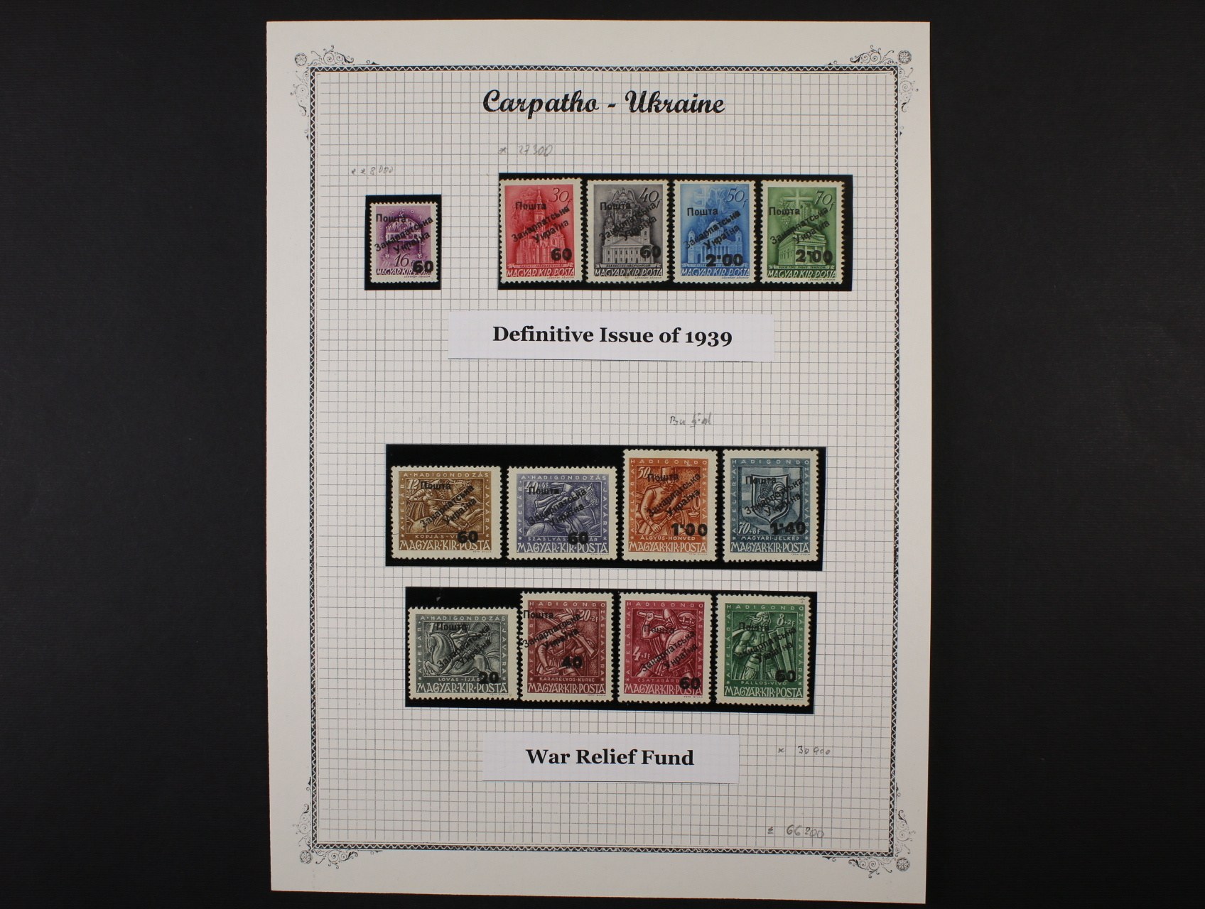 Zakarpatská Ukrajina - partie 13 ks maď. zn. s užhorodským přetiskem POŠTA ZAKARPATSKÁ UKRAJINA, II. vydání U 49, U 79 - U 87, U 89 - U 91, vše se stopou po nál., kat. Majer 61800 Kč, pravost lze ověřit u znalce ZSF Ing. Martina Jurkoviče