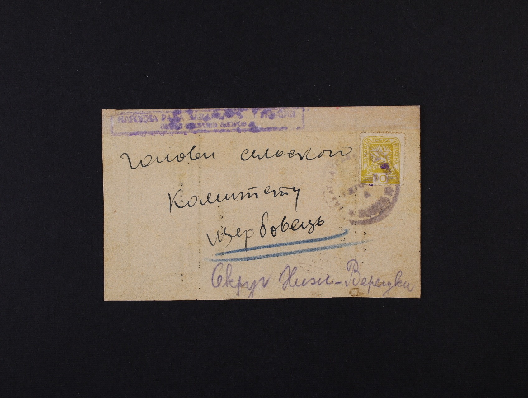 Zakarpatská Ukrajina - služební lístek z Užhorodu do Šerbovca z 6.10.45 frank. zn. II. definitivního vydání (kat. Majer č. 4), stopy pošt. provozu, zk. Bulat, atest Jurkovič