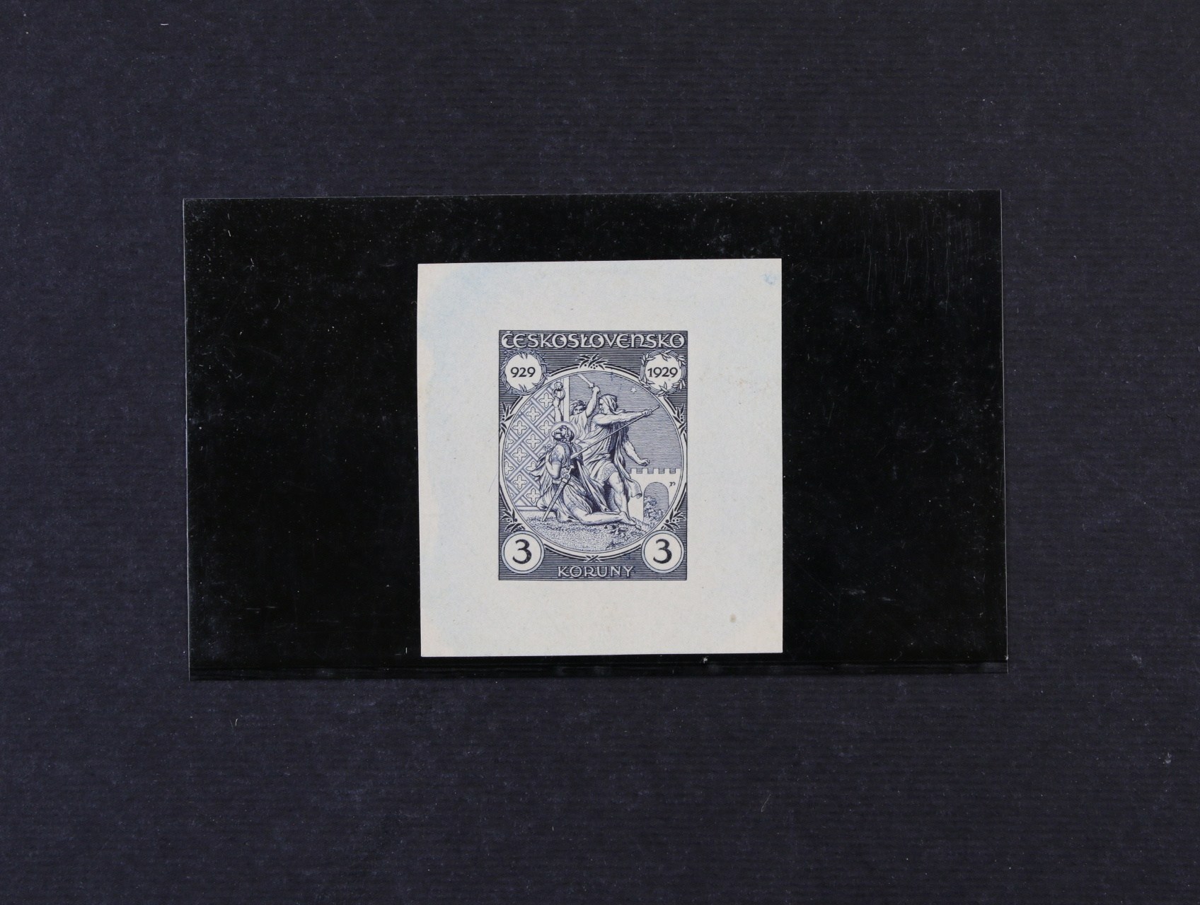 ZT zn. č. 246 3K sv. Václav - otisk původní rytiny na lístku papíru v barvě tmavě modré, zk. Vrba, kat. cena 4000 Kč