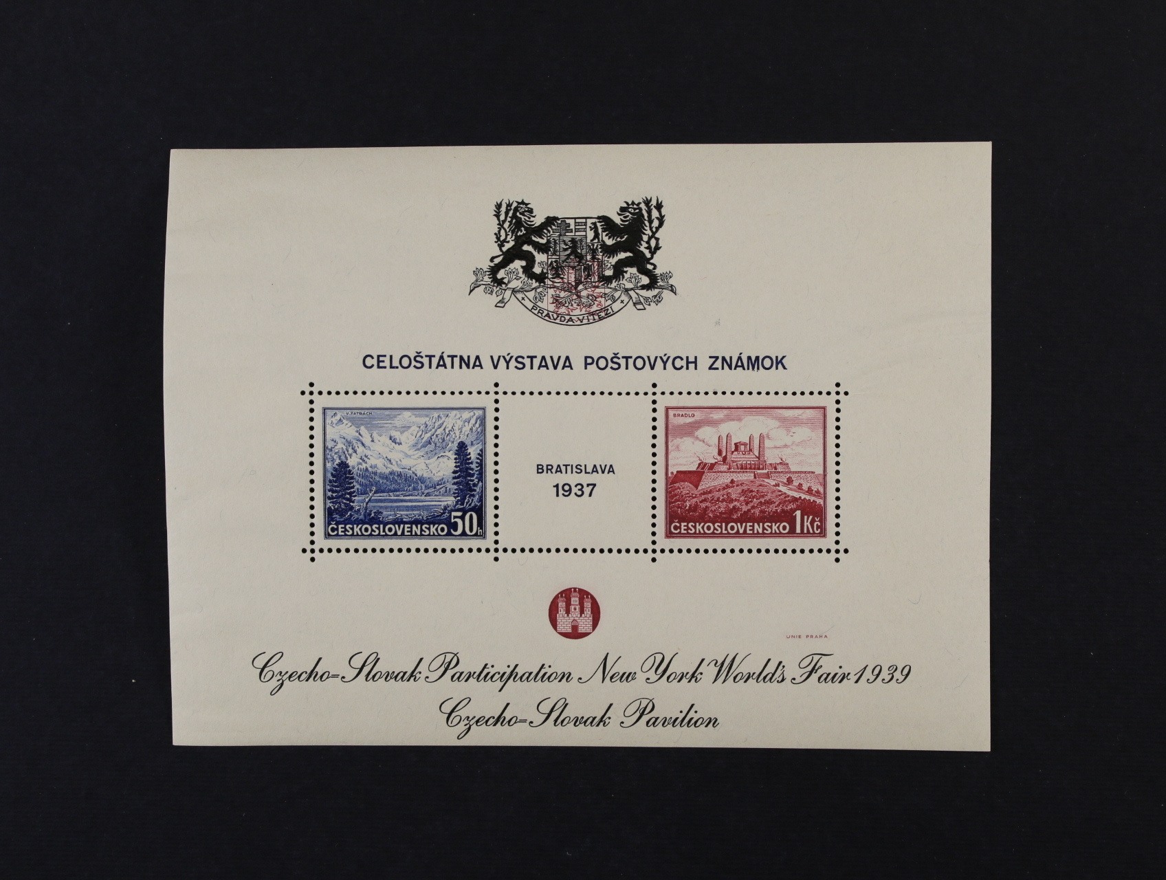A č. 329 - 330, černý přítisk pro výstavu NEW YORK 1939, zvrásněný papír
