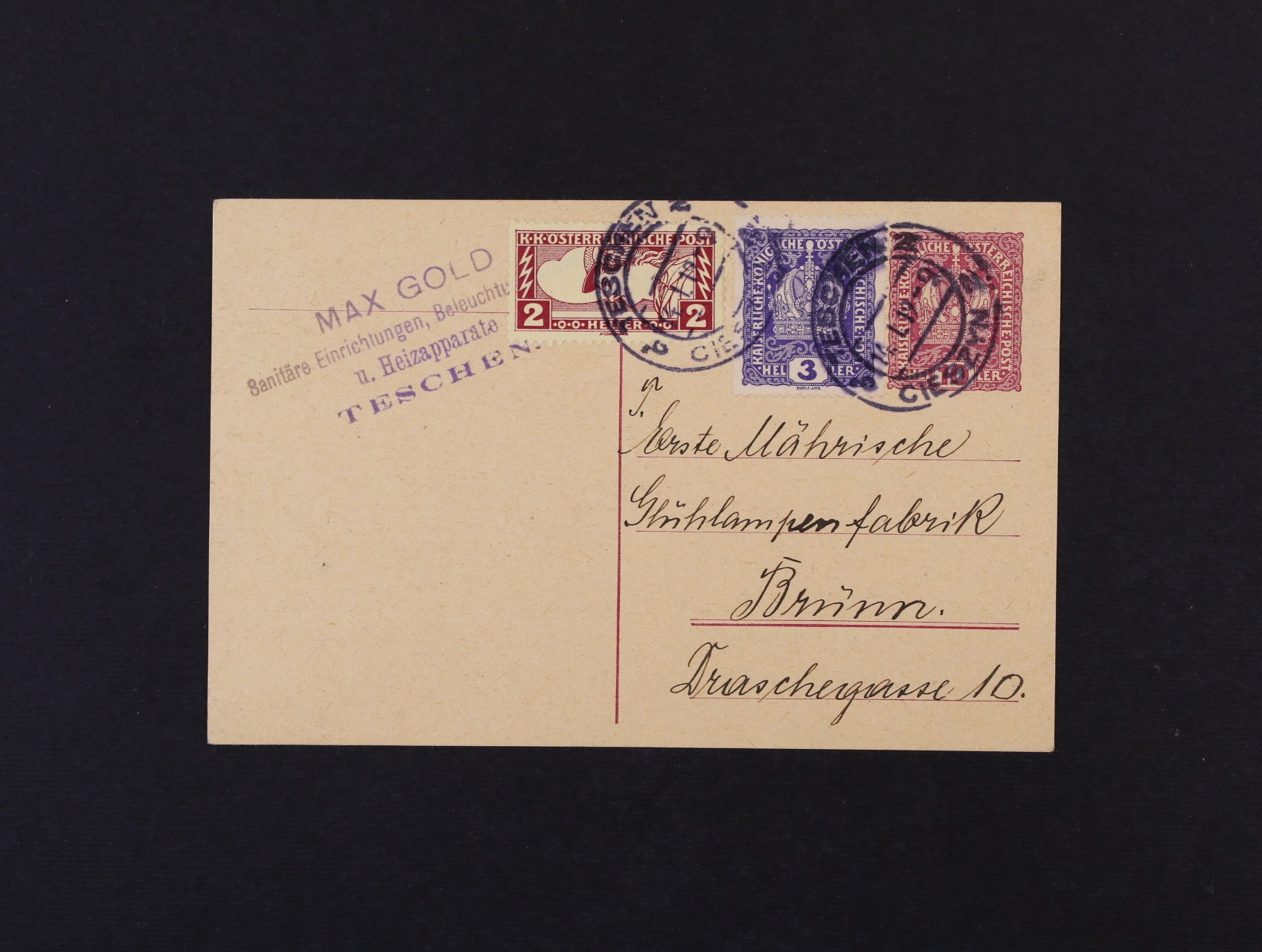 Předběžné, souběžné - rak. celina Mi. P 233b dofrank. zn. Mi. č. 185, 219, pod. raz. TESCHEN 2 14.1.19