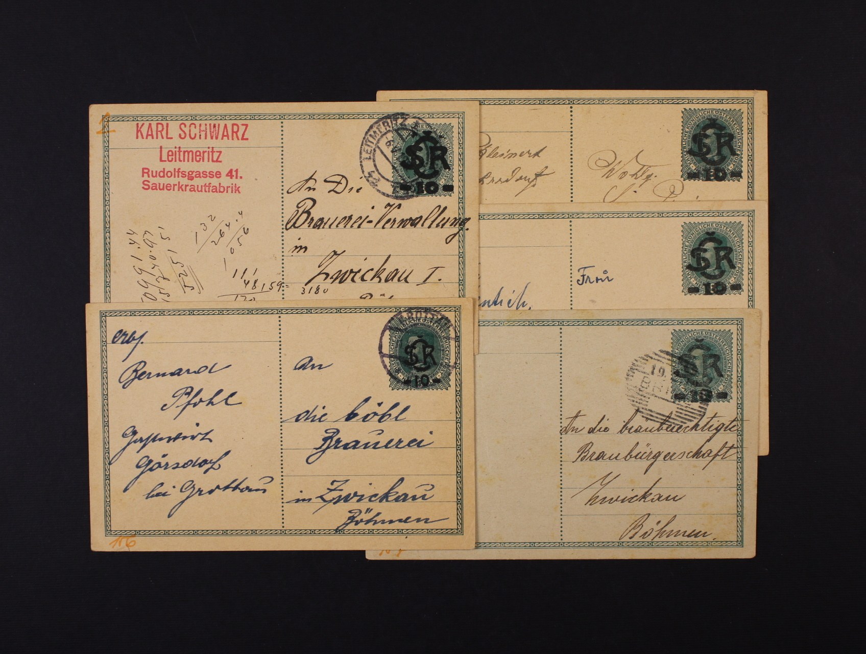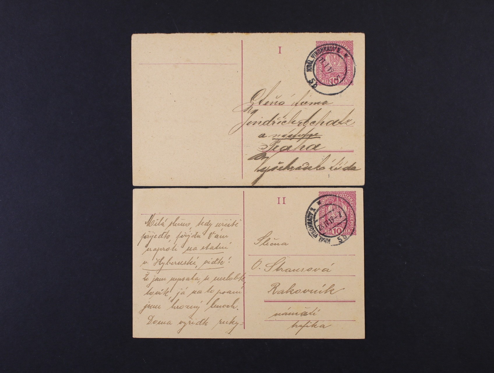 CDV č. 1 - 1x nažloutlý 1x šedivý papír, dofrank. zn. č. 1 (čtyřblok + 1 zn.) s raz. BODENBACH, resp. zn. č. 5 s raz. RADOŠOVICE, zajímavé