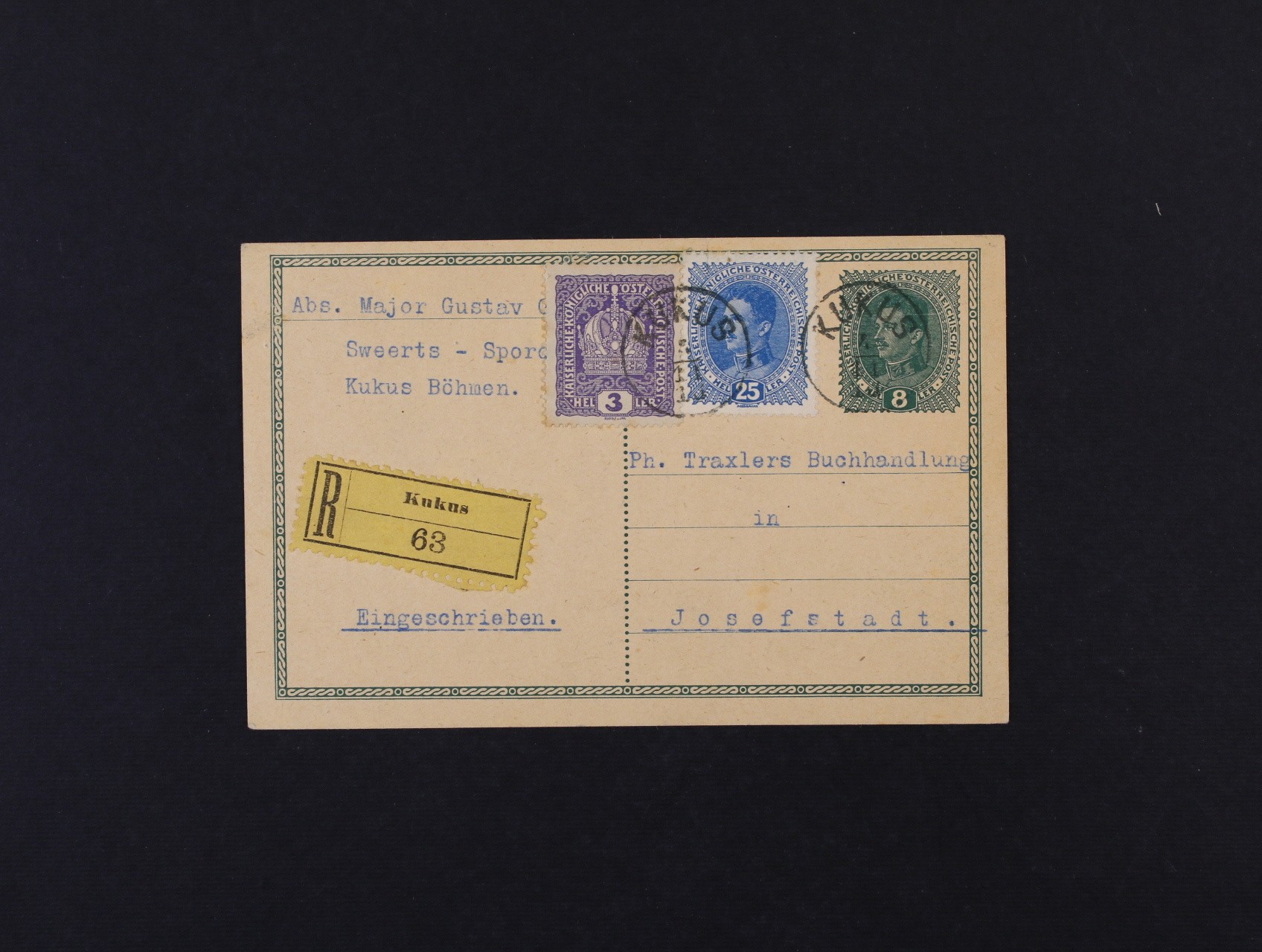Předběžné, souběžné - rak. R-KL Mi. P 235 dofrank. rak. zn. Mi. č. 185, 223, pod. jednokruh. raz. KUKUS (Kuks), zajímavé, velmi dobrá kvalita