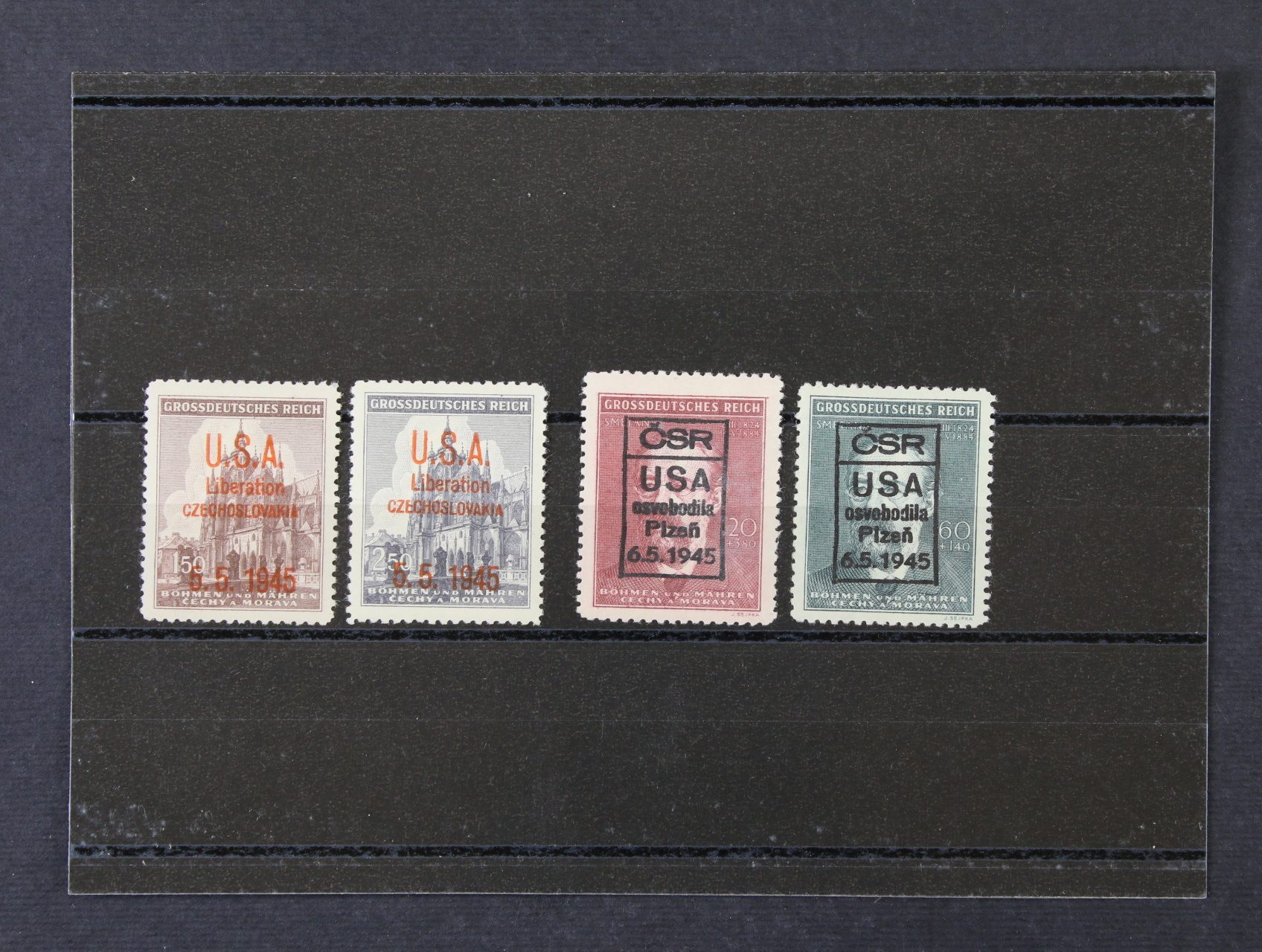 Olomouc CZL 4yb a CDV 15 a 16 s přetiskem Osvobození Olomouce ve fial. barvě