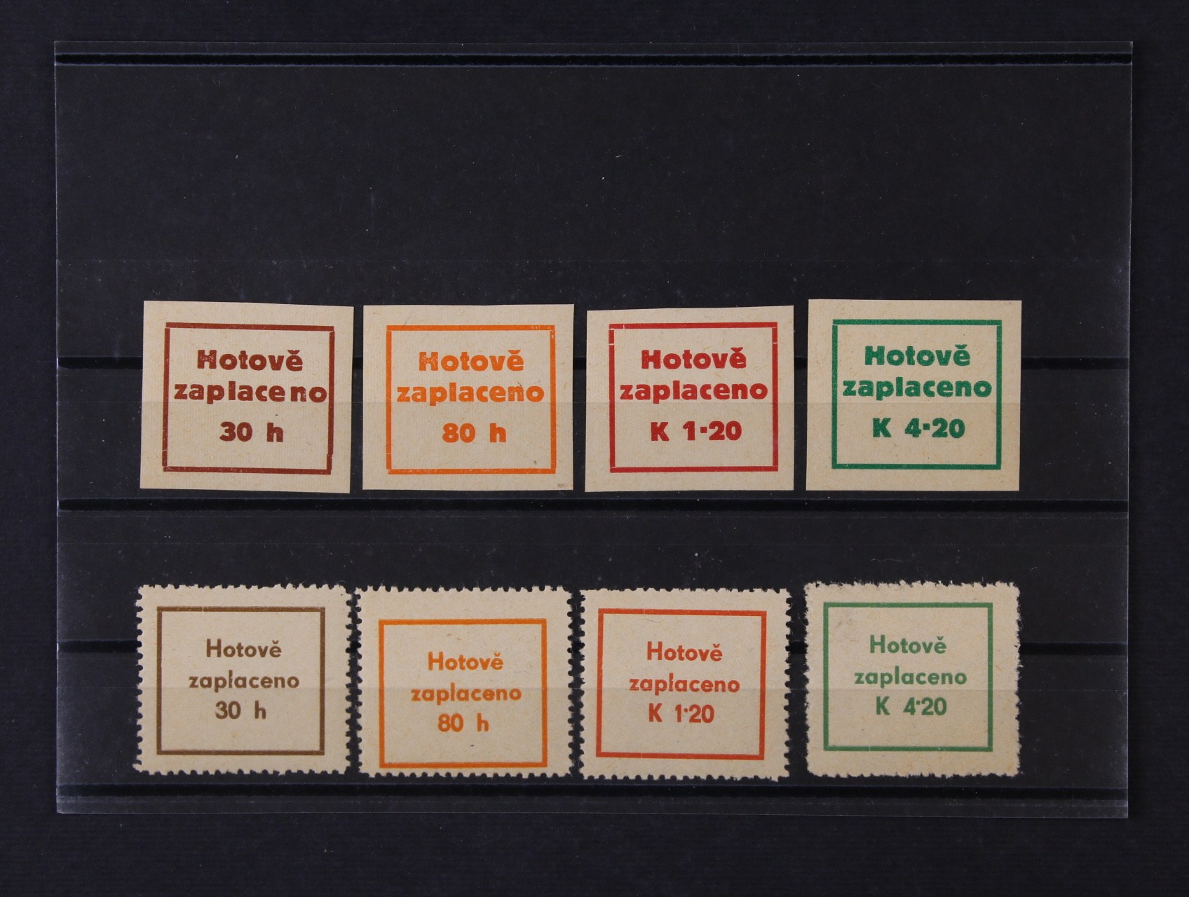 Praha - Modřany - kompletní vydání 8ks stříhaných a zoubkovaných zn. a přetiskem Hotově zaplaceno