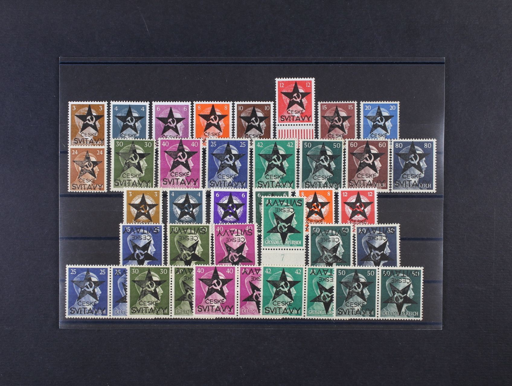 Svitavy - sestava 38ks německých zn. A.H. z toho 6ks s převráceným přetiskem a 5 párů tete-beche