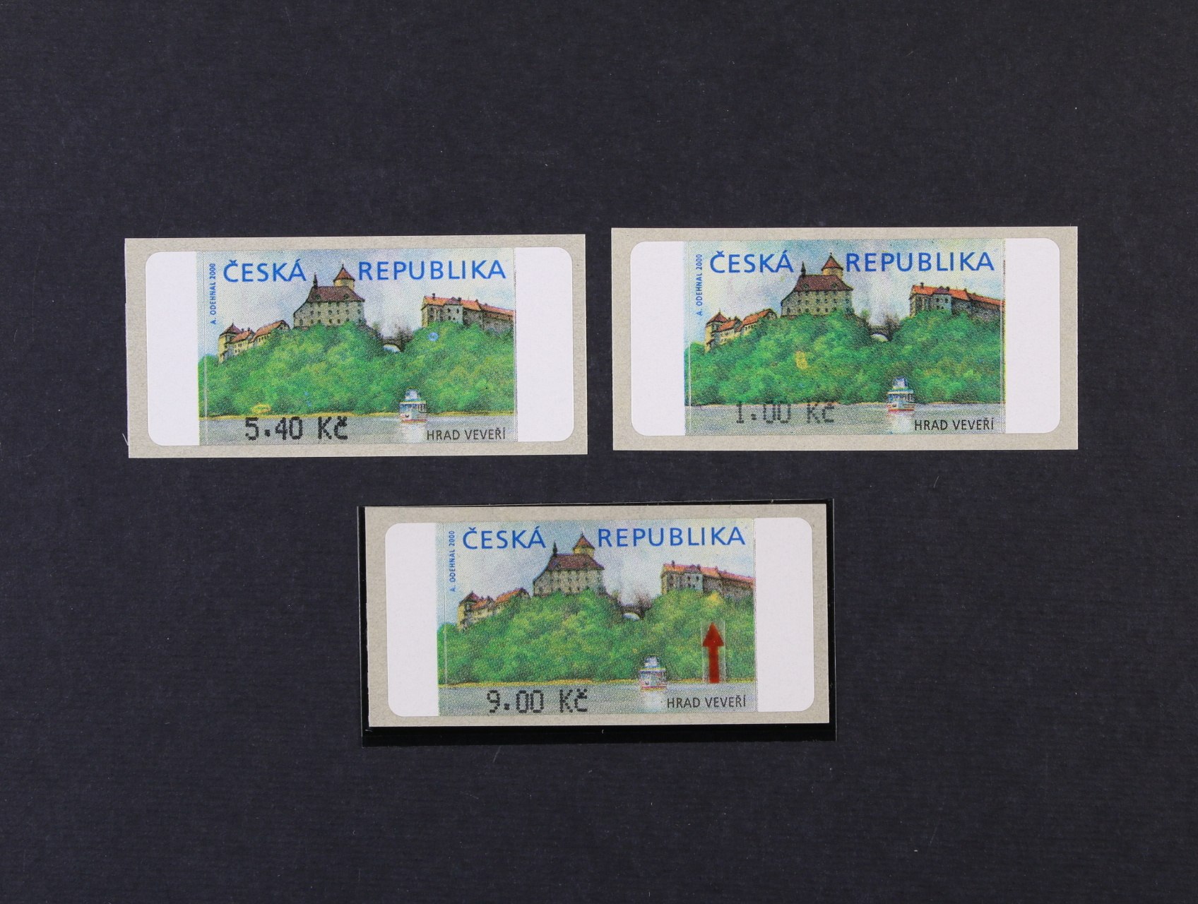 967 zn. AT č. 1 - sestava 3 ks známek s VV 1, VV 3 výrazné žluté skvrny na různých místech (pouze na části nákladu) 600