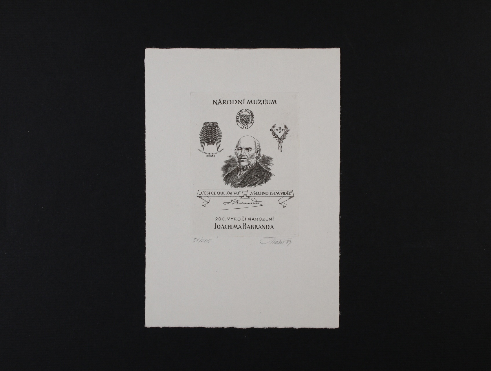 970 Grafický list 1999 - 200. výročí narození J. Barranda, varianta s číslem a podpisem autora, kat. merkur revue 1200,- 500