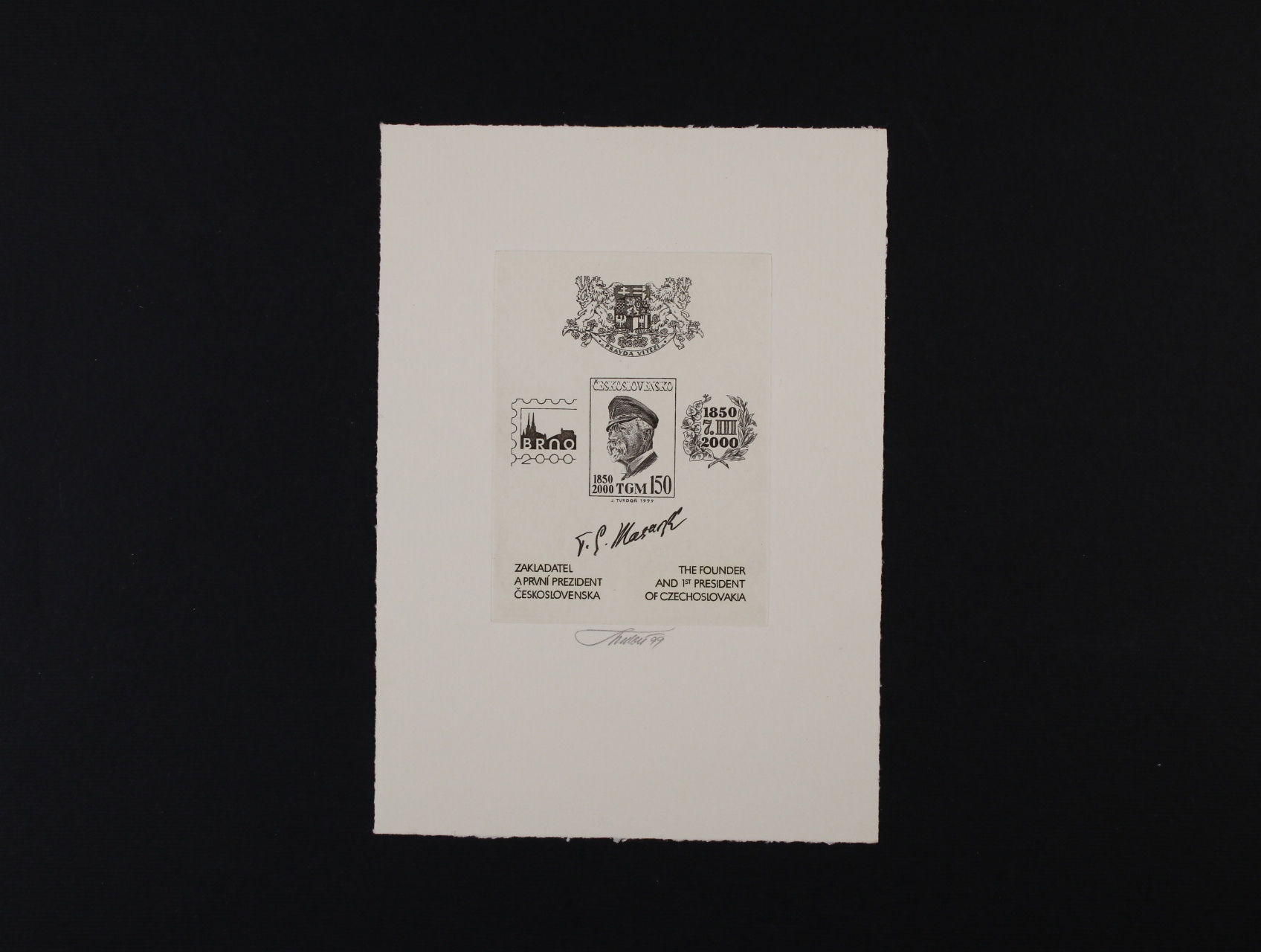 971 Grafický list 2000 - Brno 2000 - 150. výročí narození T. G. Masaryka, autorský tisk s podpisem rytce, kat. merkur revue 1000,- 300