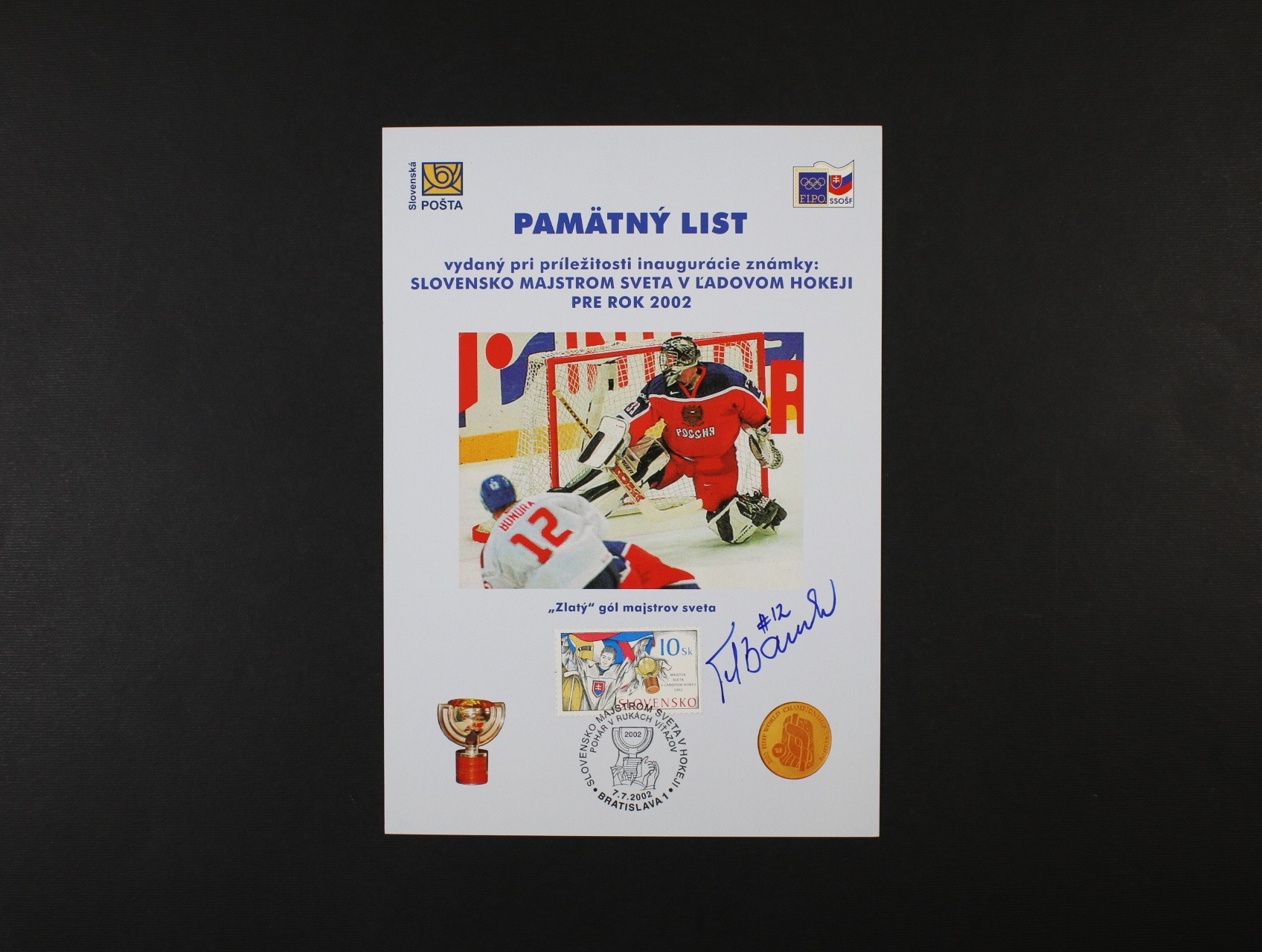 974 pam. list "Zlatý" gól maistrov sveta 2002 s vylepenou zn. č. 272 a podpisem autora gólu P. Bondra 1000