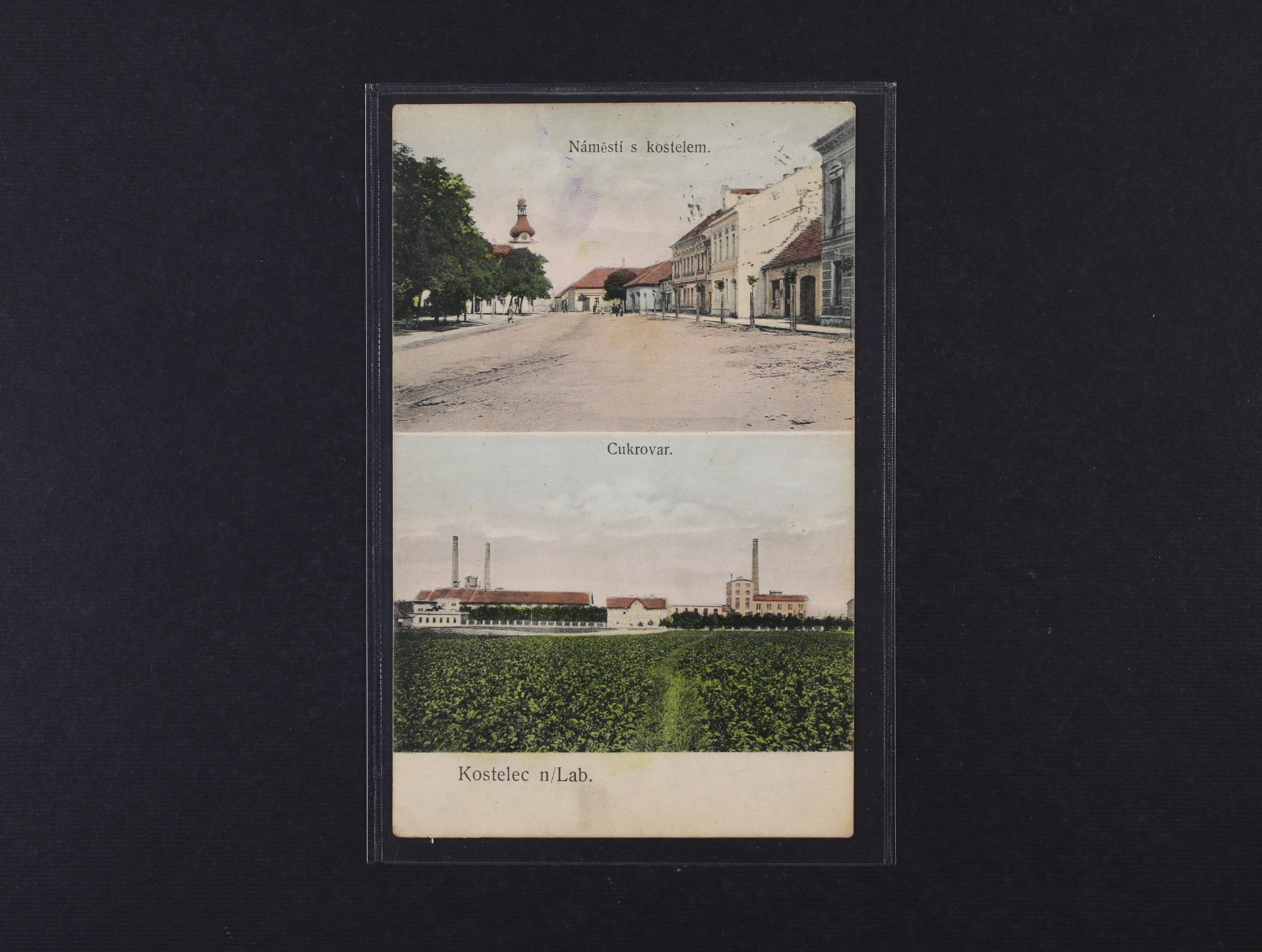 997 Kostelec nad Labem, okr. Mělník - dvoubar. dělená pohlednice, použitá 1911 200
