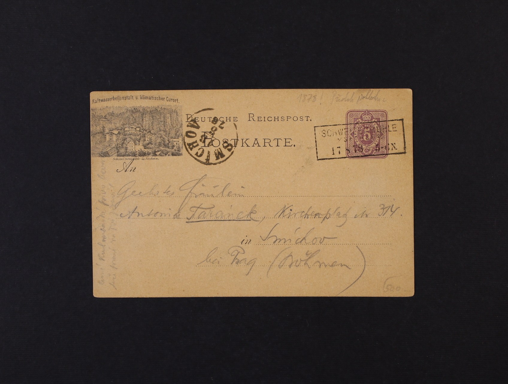 Německo - předběžné KL s natištěným obrázkem Schweizermühle in Sachsen, použitá 1878