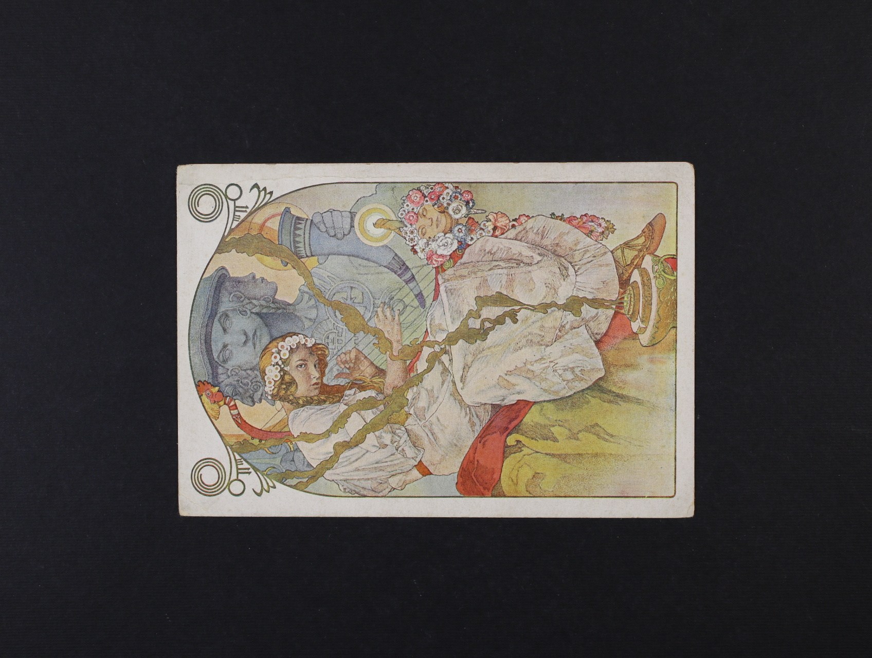 A. Mucha - bar. koláž Jarní slavnosti pěvecké a hudební v Praze, použitá