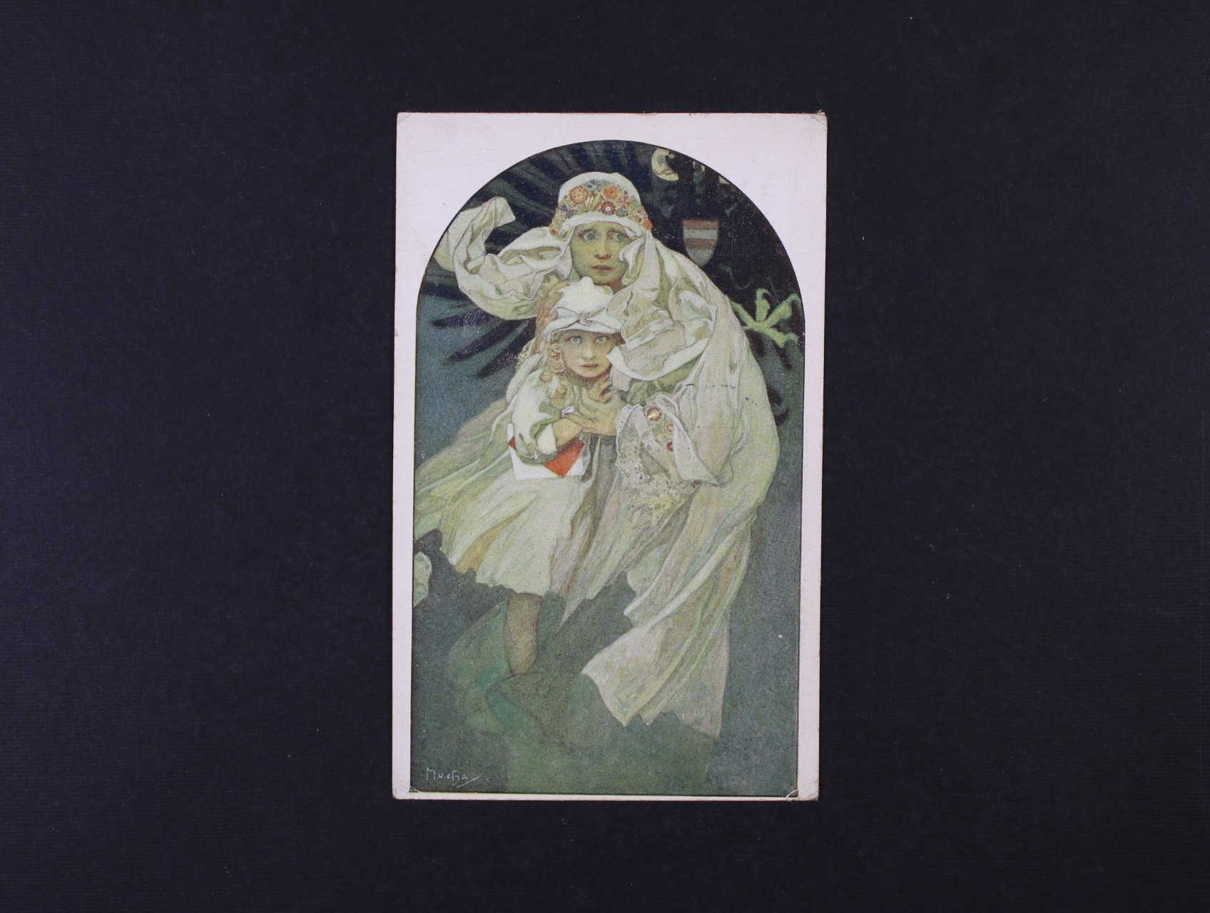A. Mucha - bar. pohlednice Brněnská matice školská, použitá 1915