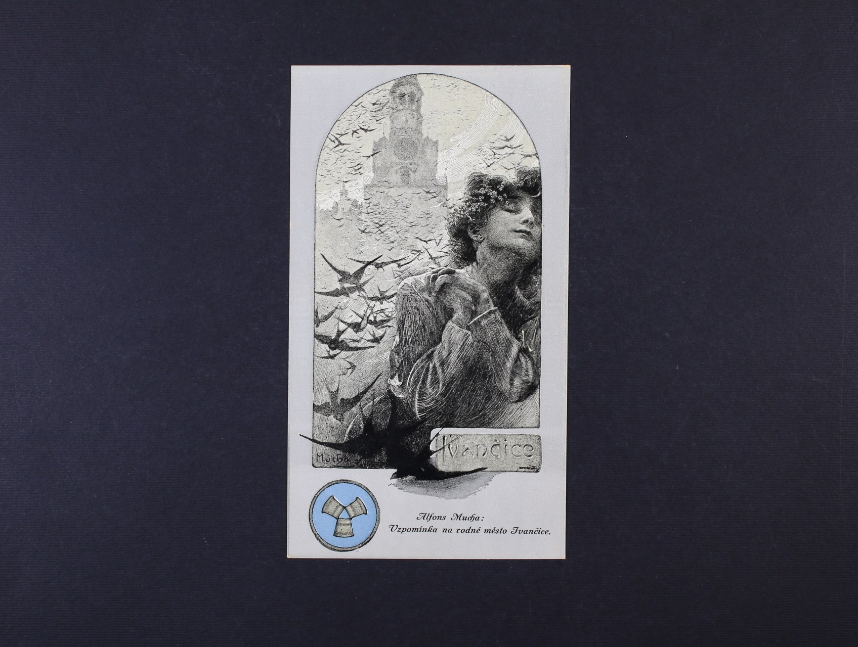 A. Mucha - dvoubar. pohlednice Vzpomínka na rodné město Ivančice