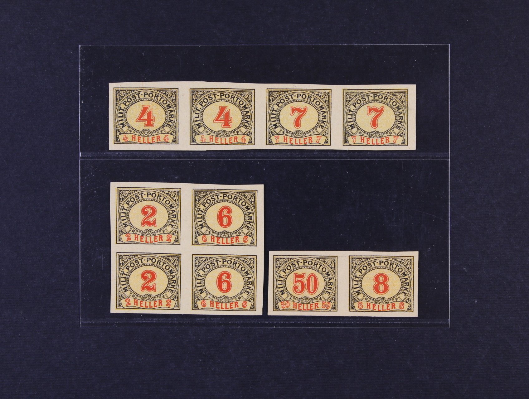 zn. ANK. č. P2, P4, P6, P7, P8, P12, Doplatní - tzv. MINISTERSKÉ SOUTISKY 2+6+2+6h, 4+4+7+7h, 50+8h; bezvadné, vydáno na papíru bez lepu, ex Wiener Postarchiv , kat. min. 450 EUR