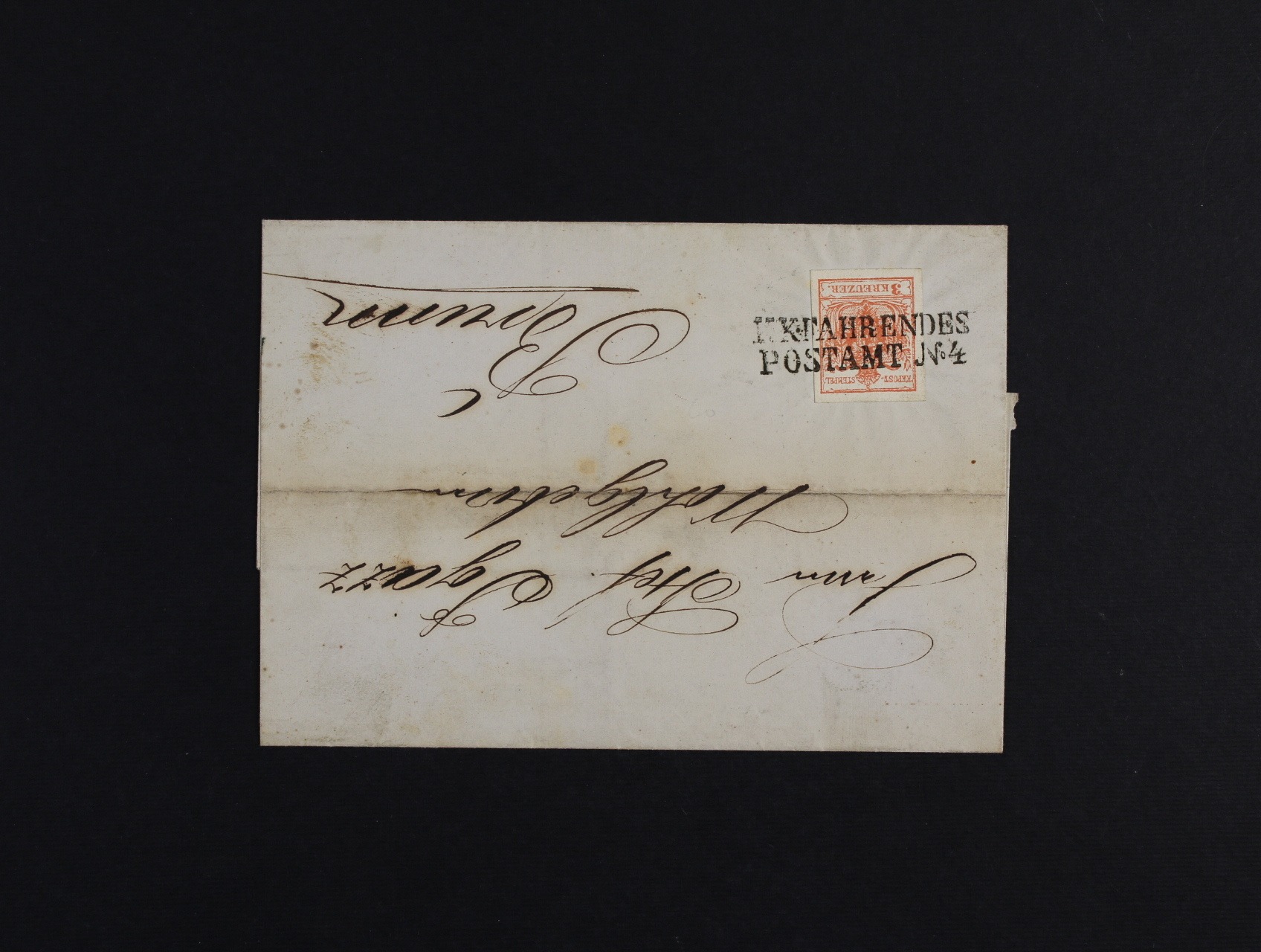 skl. dopis do Brna z r. 1853 frank. zn. Fe. č. 3, typ III HP, pod. řádk. raz. K.K. FAHRENDES POSTAMT No. 4 + přích. raz.