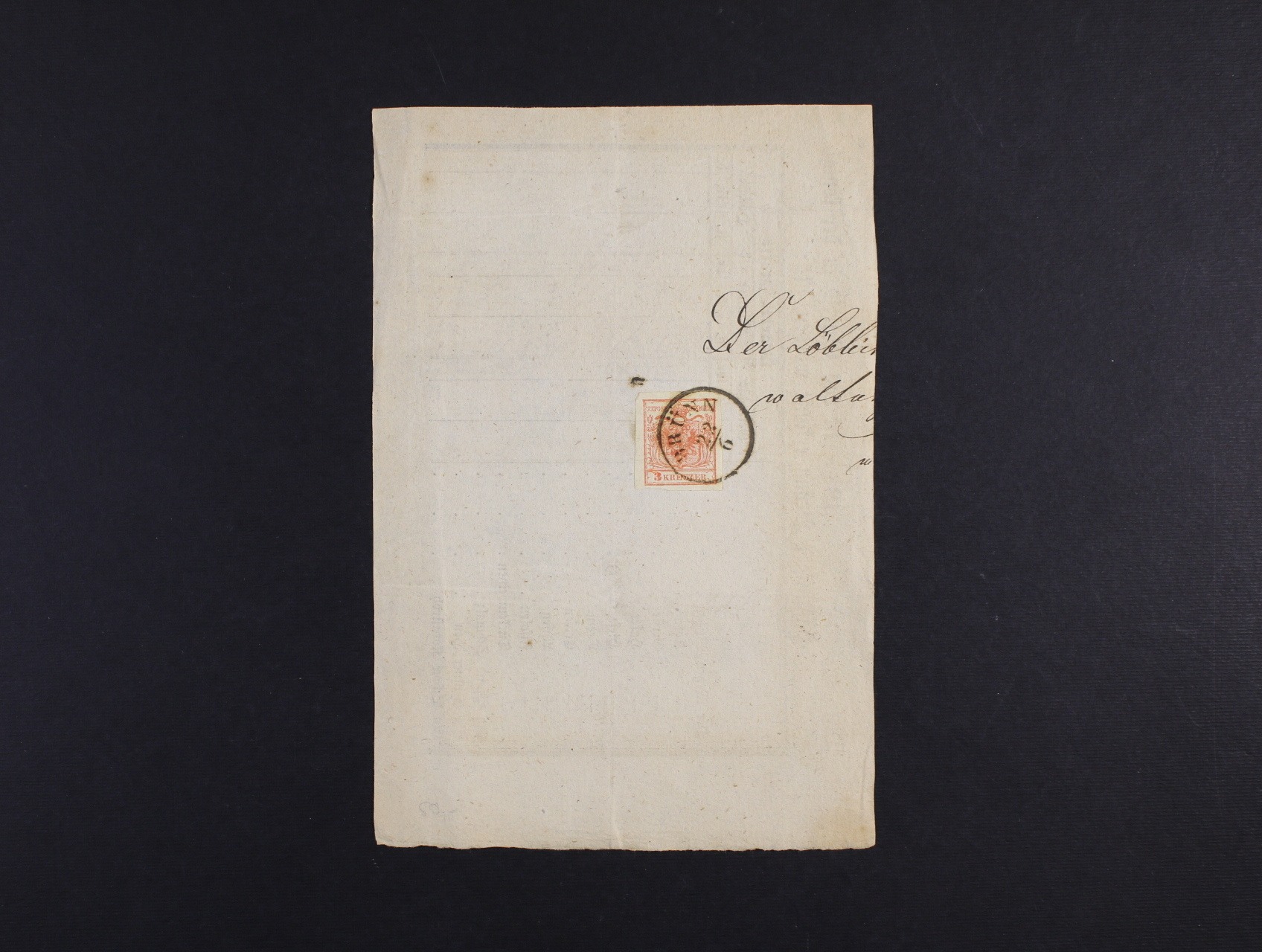 tržní listina z r. 1854 frank. zn. Fe. č. 3 HP, typ III, s jednokruh. černým raz. BRÜNN 22.6.