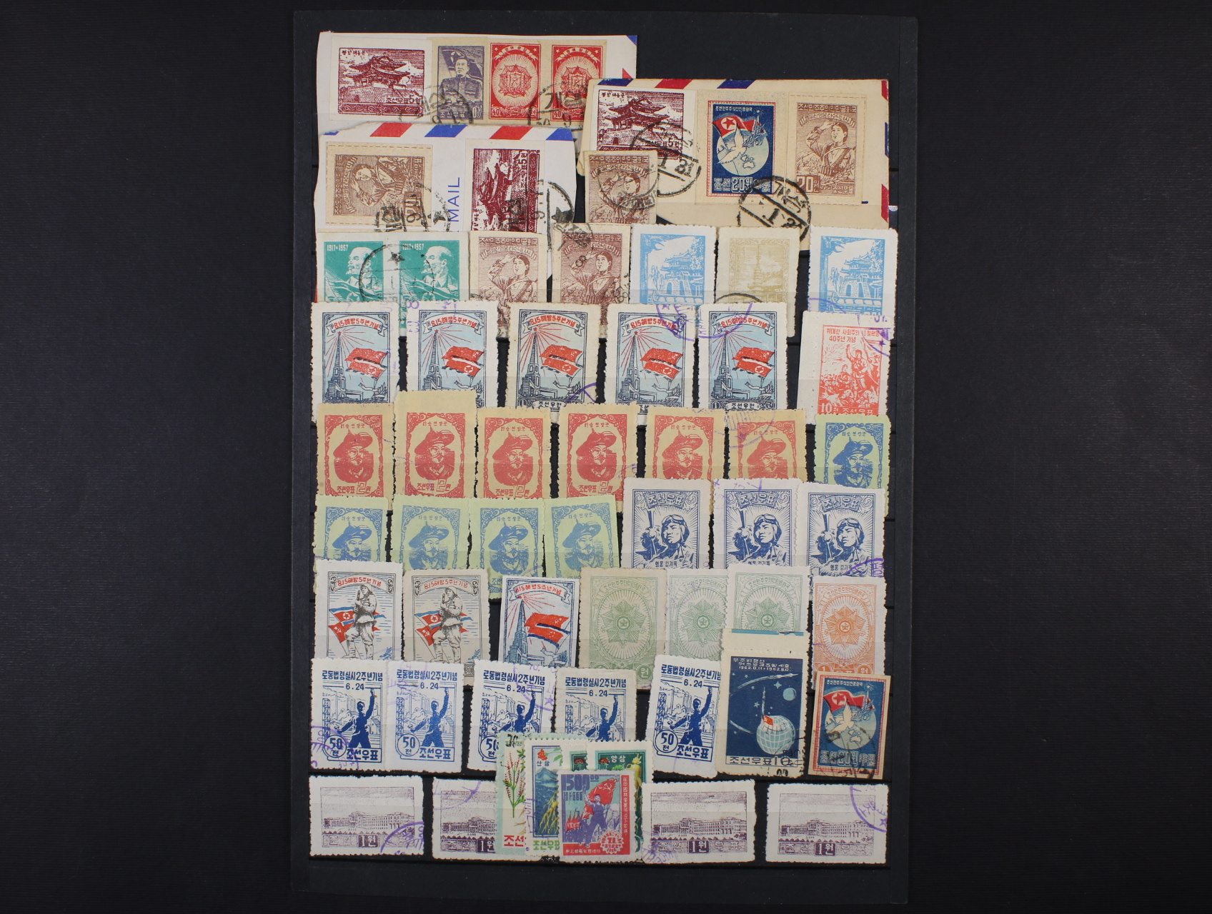 Severní Korea - sestava cca 100 ks zn. a výstřižků převážně razítkovaných