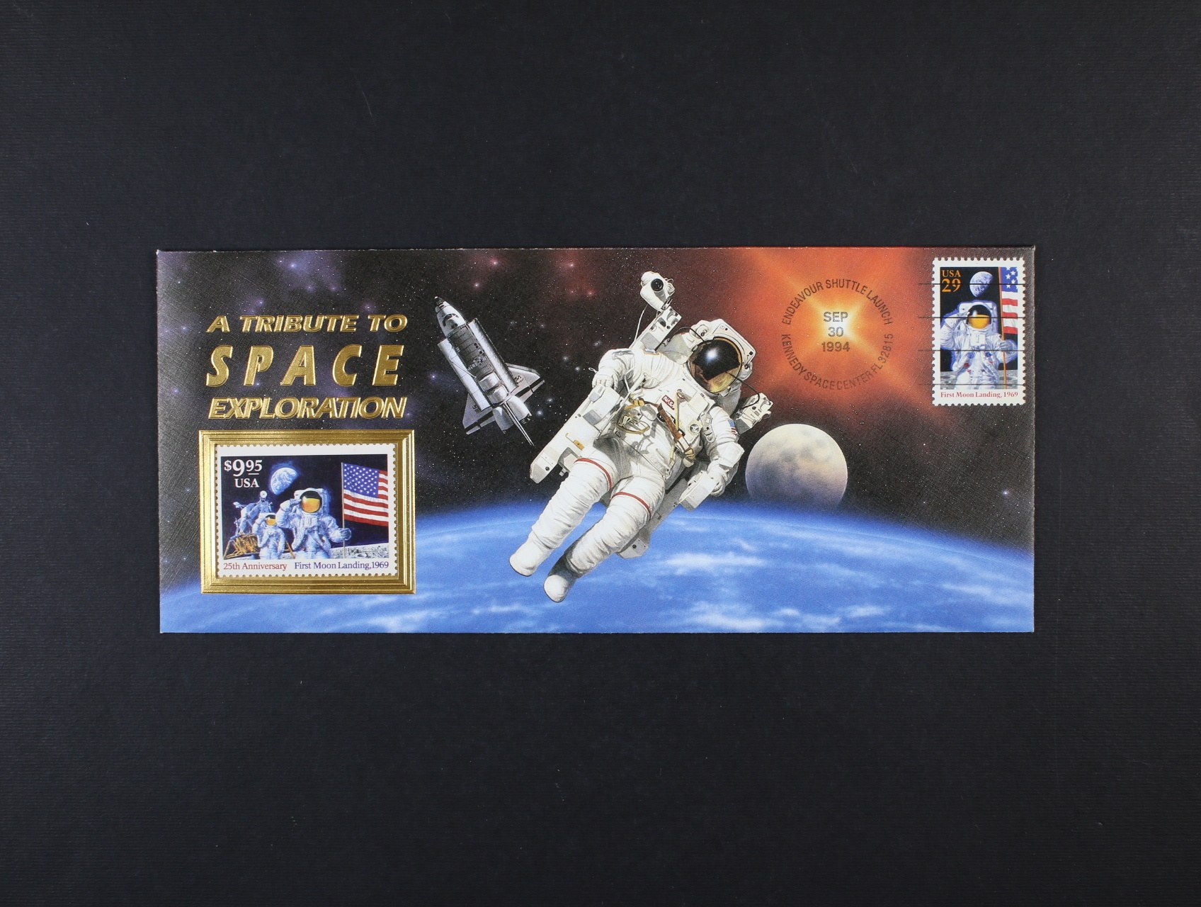 USA - spec. obálka vydaná k výročí letu na měsíc z r. 1994 s vloženou známkou 9.95 USD First Moon Landing 1969 s číslovaným certifikátem, zajímavé