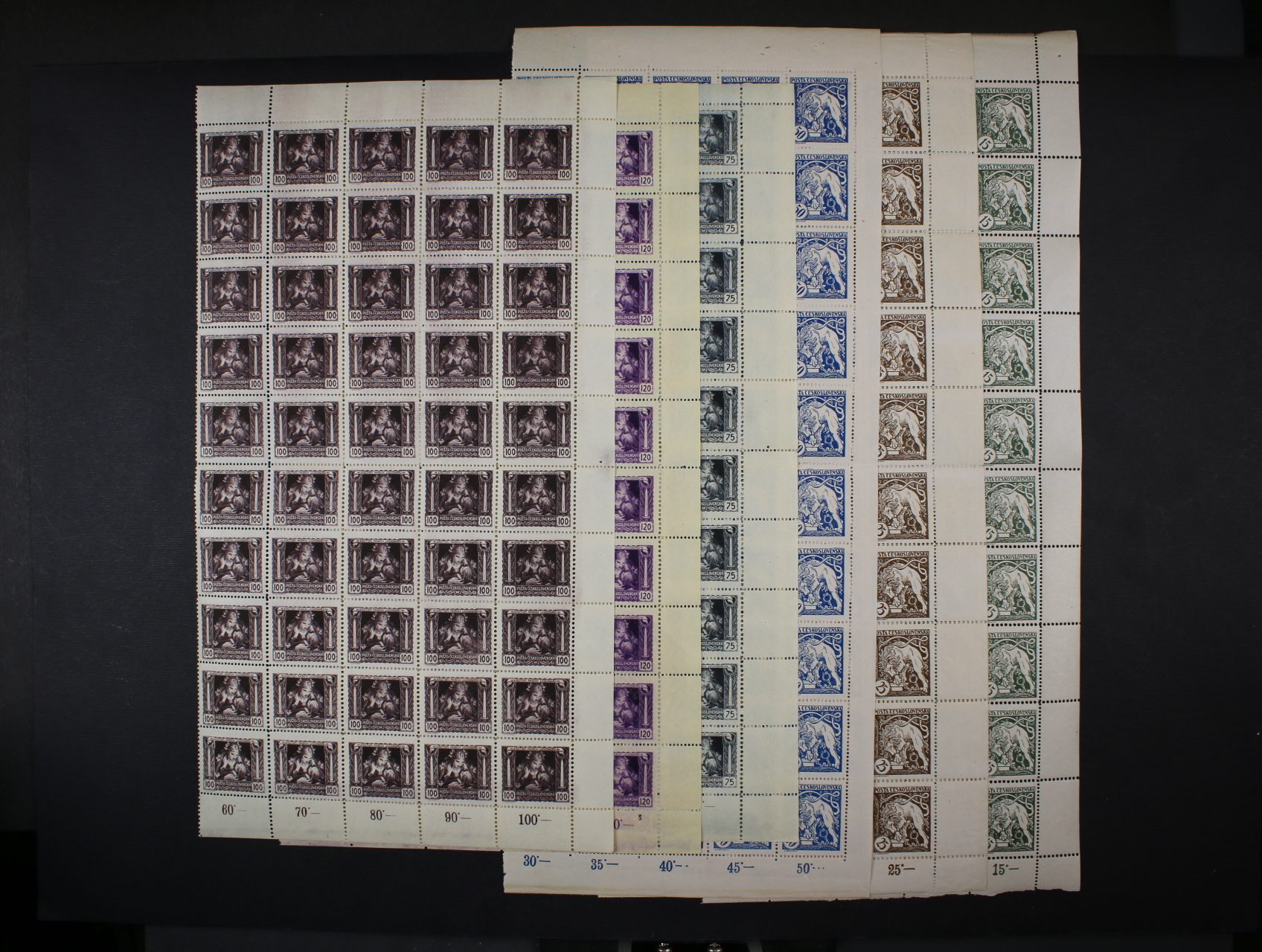 258 zn. č. 27 N - 32 N se čtvrtinovým nátiskem v modré barvě 500