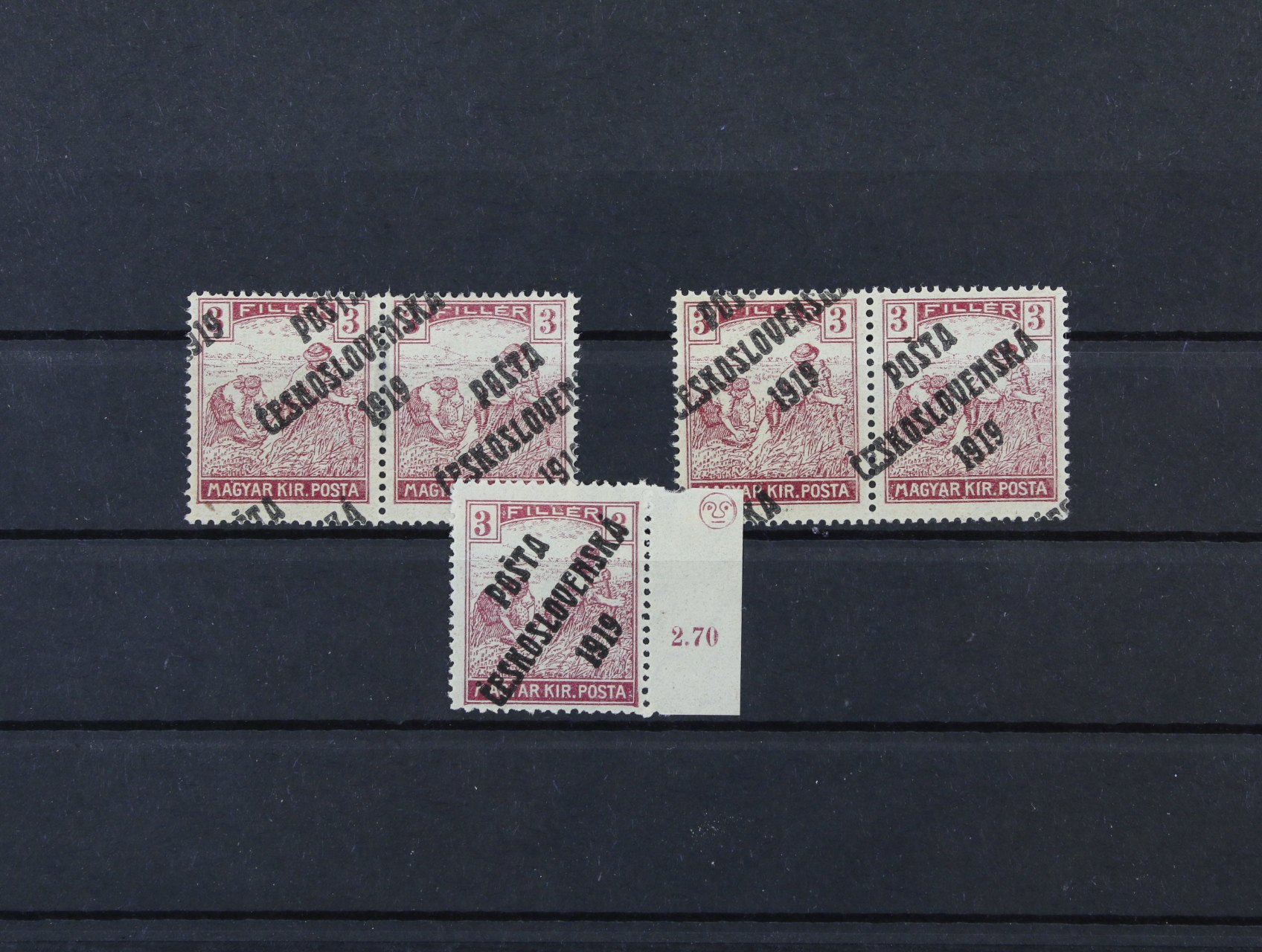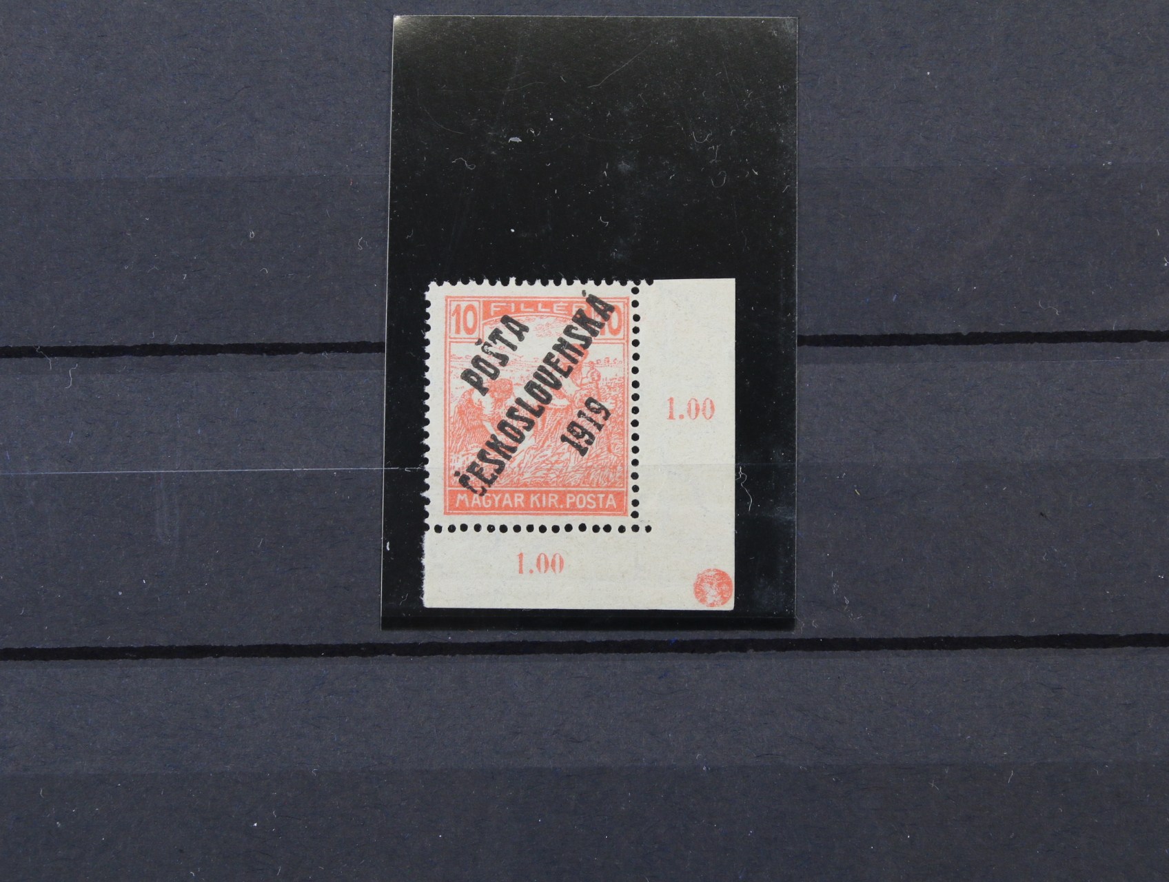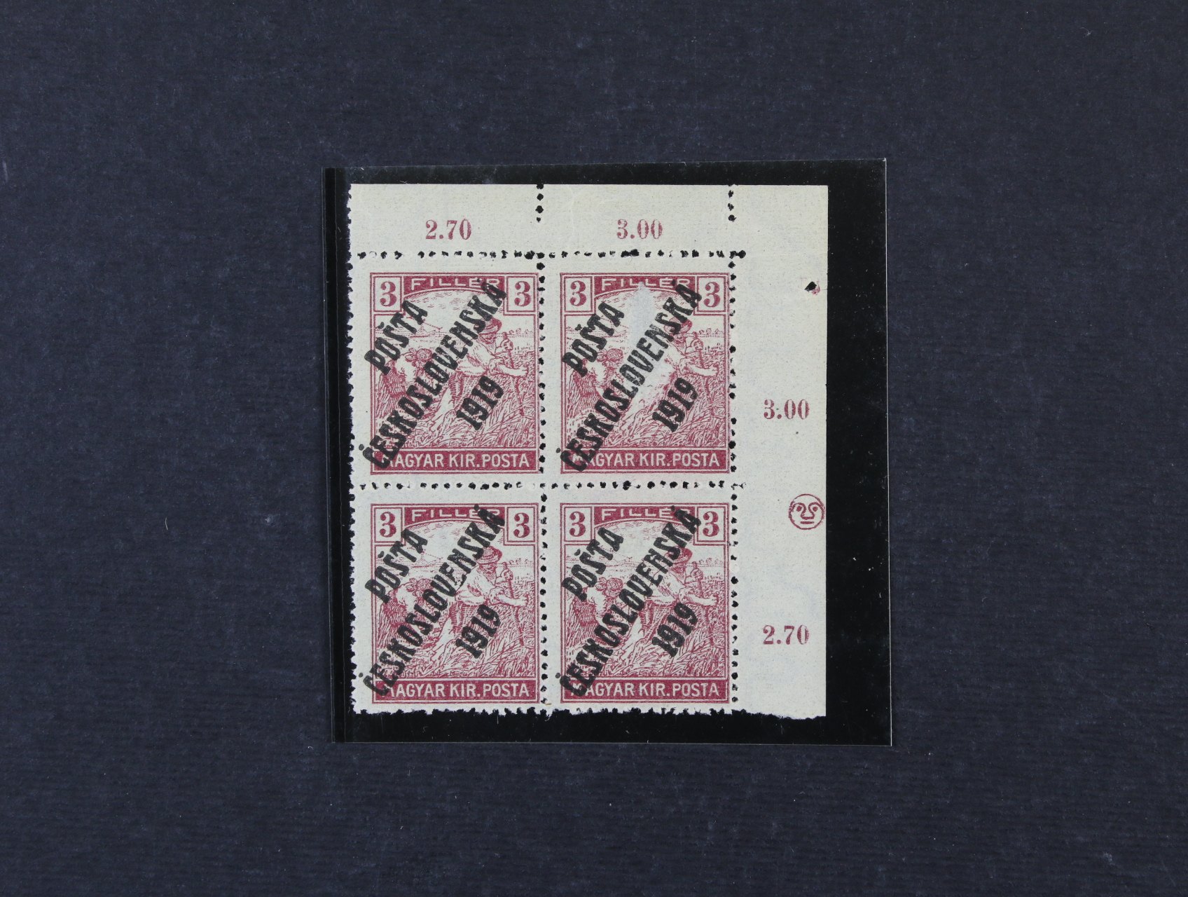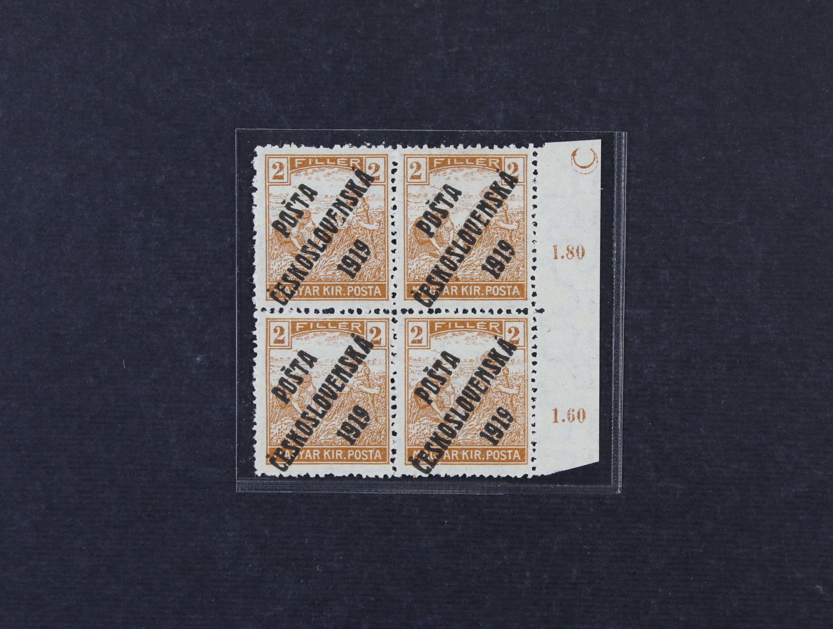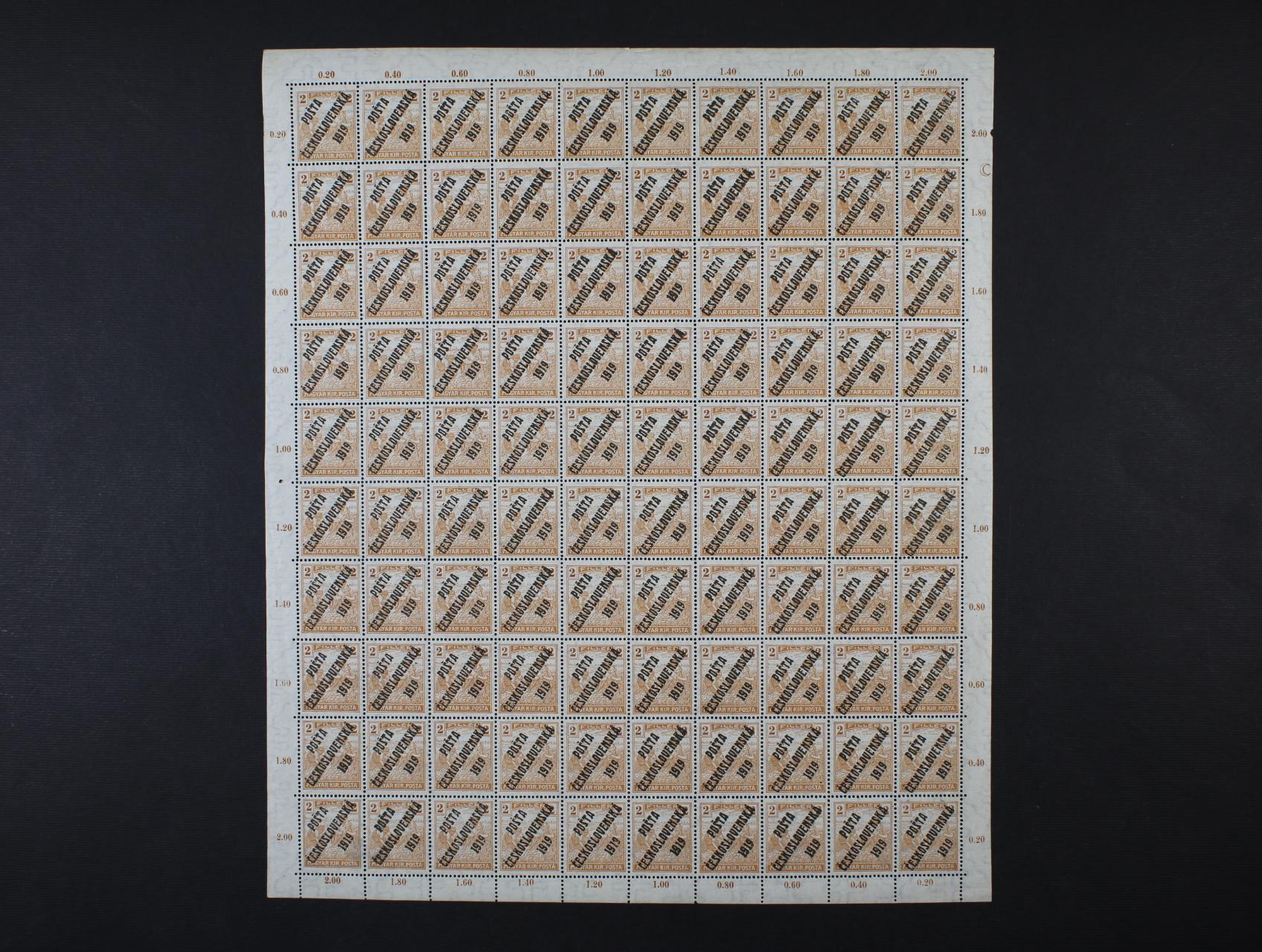 zn. č. 101 2fil Ženci v kompl. 100kusovém PA, ST přetisku, v pravém horním rohu za ZP 20 DZ půlměsíc, v kompl. archu vzácné, prakticky se nevyskytuje