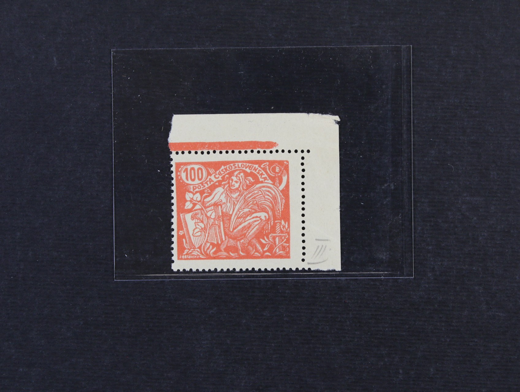 457 zn. č. 173 B, typ III - pravý horní roh. kus s otiskem ochr. lišty na horním okraji 500