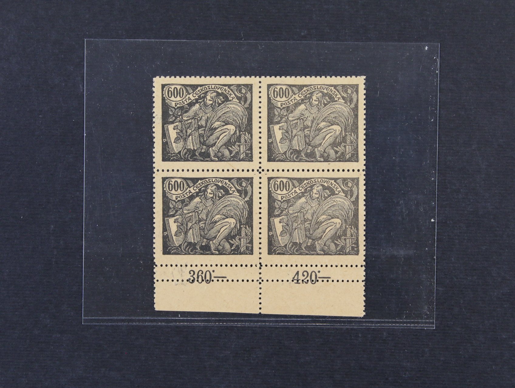 ZT přetisku A v barvě červené ve čtyřbloku, resp. černé na kříd. papíře - pravý horní roh. čtyřblok, zk. Vrba, vzácné