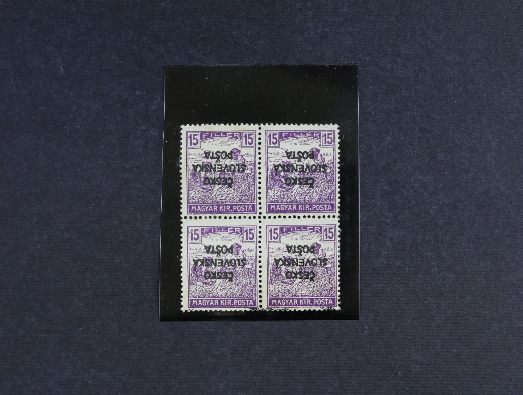703 Žilinské vydání - zn. RV č. 142 ve čtyřbloku, převrácený přetisk, zk. Vrba, kat. cena 2200 Kč 1600