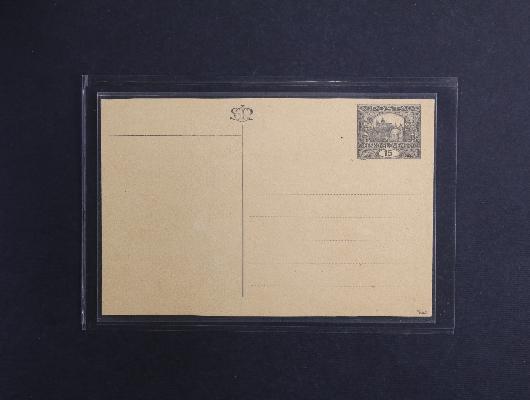 CDV č. 2b, část 1 s velkým posunem přetisku vlevo až mimo zn. pod. raz. KRÁL. VINOHRADY 30.4.19, zajímavé, vzácné