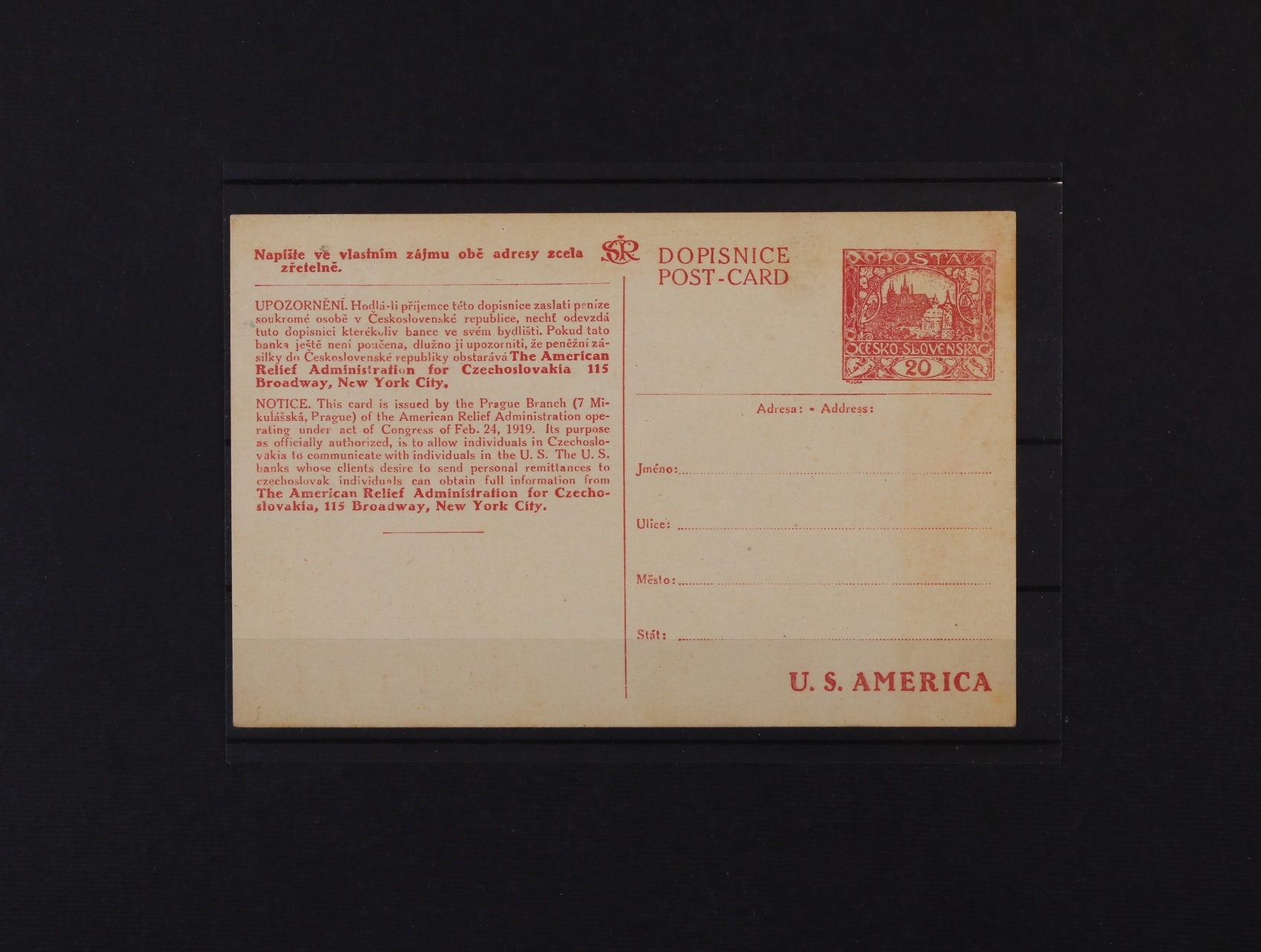 CDV č. 2a dvojitá, nerozřezaná se stroj. obtiskem přetisku na části 2, nepoužitá, kat. cena 1000 Kč